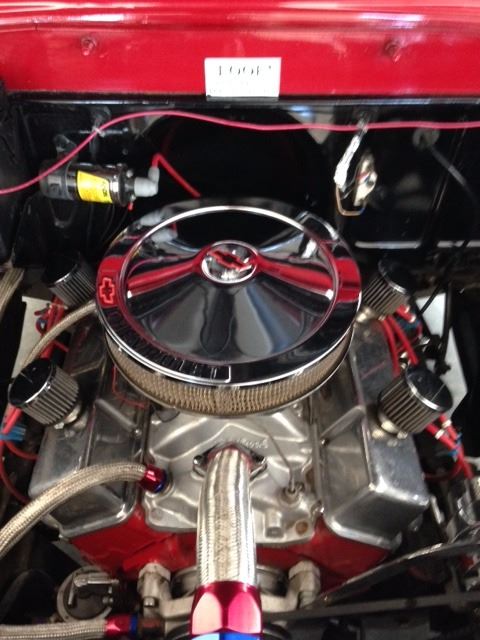 327 cu. V8-4 bbl-Edelbrock-3 spd auto-B&M shift kit. Approx.1200 miles on Pro overhaul. 202 heads-290 ISKY Cam-750 CFM Edelbrock 4 bbl carb & Hi Rise aluminium intake & water pump.