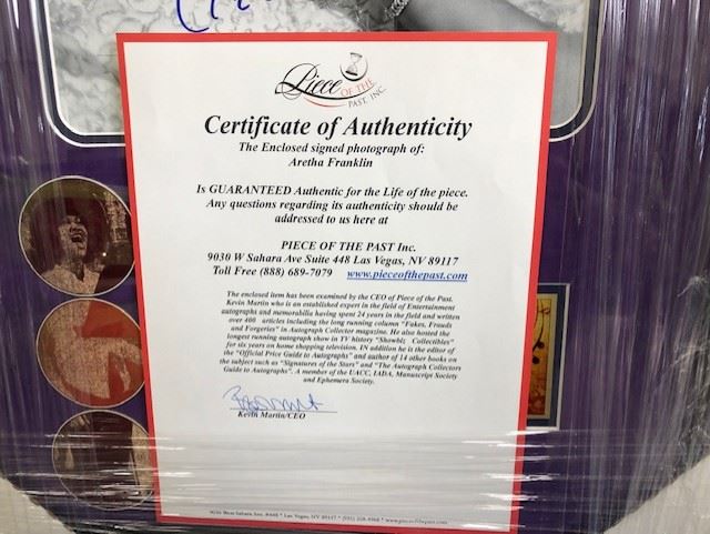 ARETHA FRANKLIN AUTOGRAPHED PHOTO WITH COA