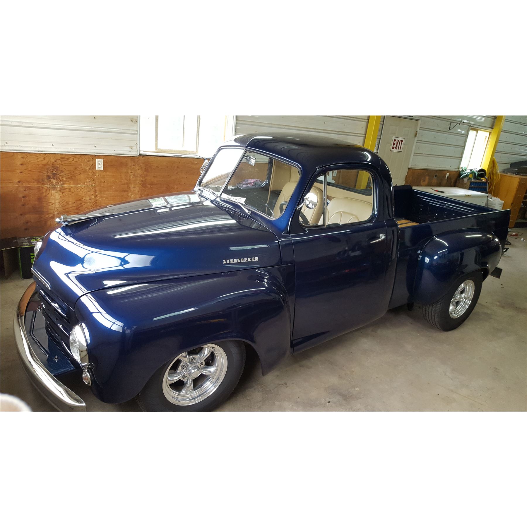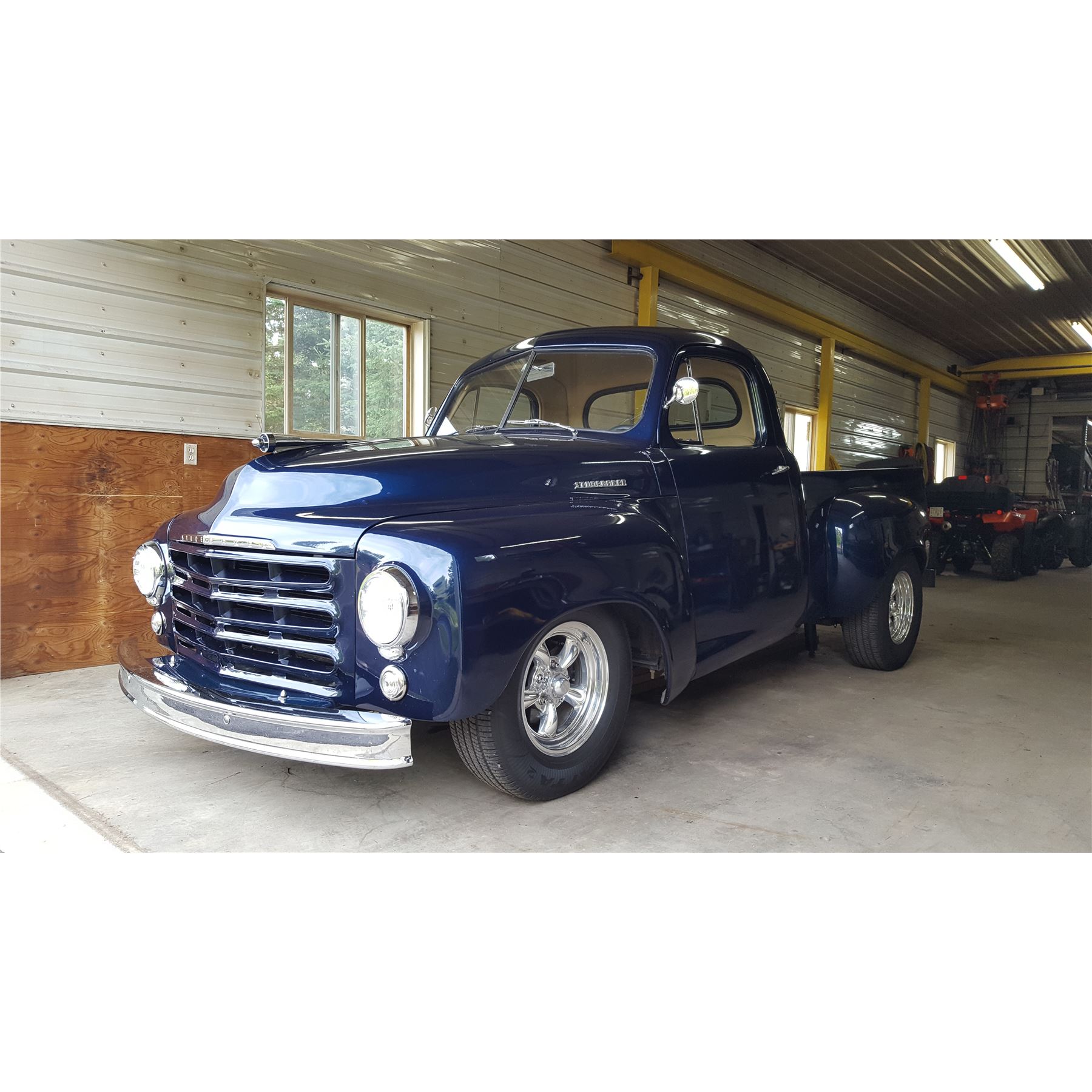 The current owner purchased the truck from her employer, who had it built in his cousins body shop - Country Collision and Restoration. During the restoration/modification project, the box and front-end were removed and the frame was shipped to Wadsons Hot Rod shop in Edmonton for a rebuild. At the same time, a Mustang II front end with disc brakes and rear disc brakes were installed. A wrecked late-model Corvette was purchased and the motor and transmission were mounted in the Studebaker. The body was redone at Country Collision, the upholstery at Arlos Upholstery and the truck was completely rewired at the time of restoration. A recent appraisal notes this well-restored vehicle is a combination of superior restoration and excellent original parts! This truck has been well maintained and has received annual oil changes. Due to a move and property down-size, the owner is regretfully selling but wishes the new owner(s) as much enjoyment from this truck as she and her family had!