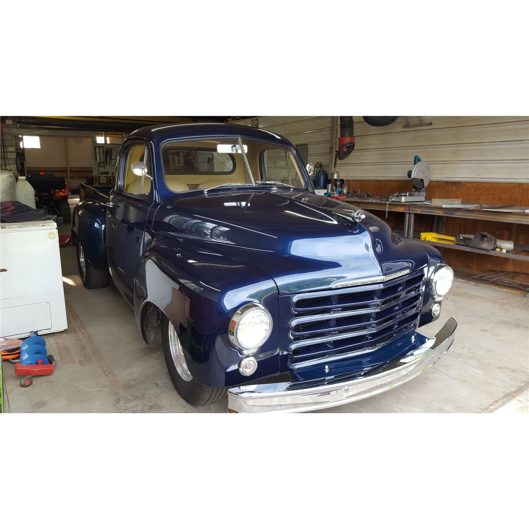 This stunning 1950 Studebaker classic truck is a model 2R512 with just over 4200 miles on it since its restoration/modification. The 10 year project took place at what is now known as Comfort Collision, in Red Deer. Completed just over 18 years ago, this head-turning beauty has a Corvette TPI 350 engine and 700R4 automatic transmission. It has a Mustang II front-end and is rolling on Goodyear Regatas mounted on American Racing wheels. Updates include power and tilt steering, power windows and brakes, power tailgate, radio, dual exhaust and gauge package with tachometer.