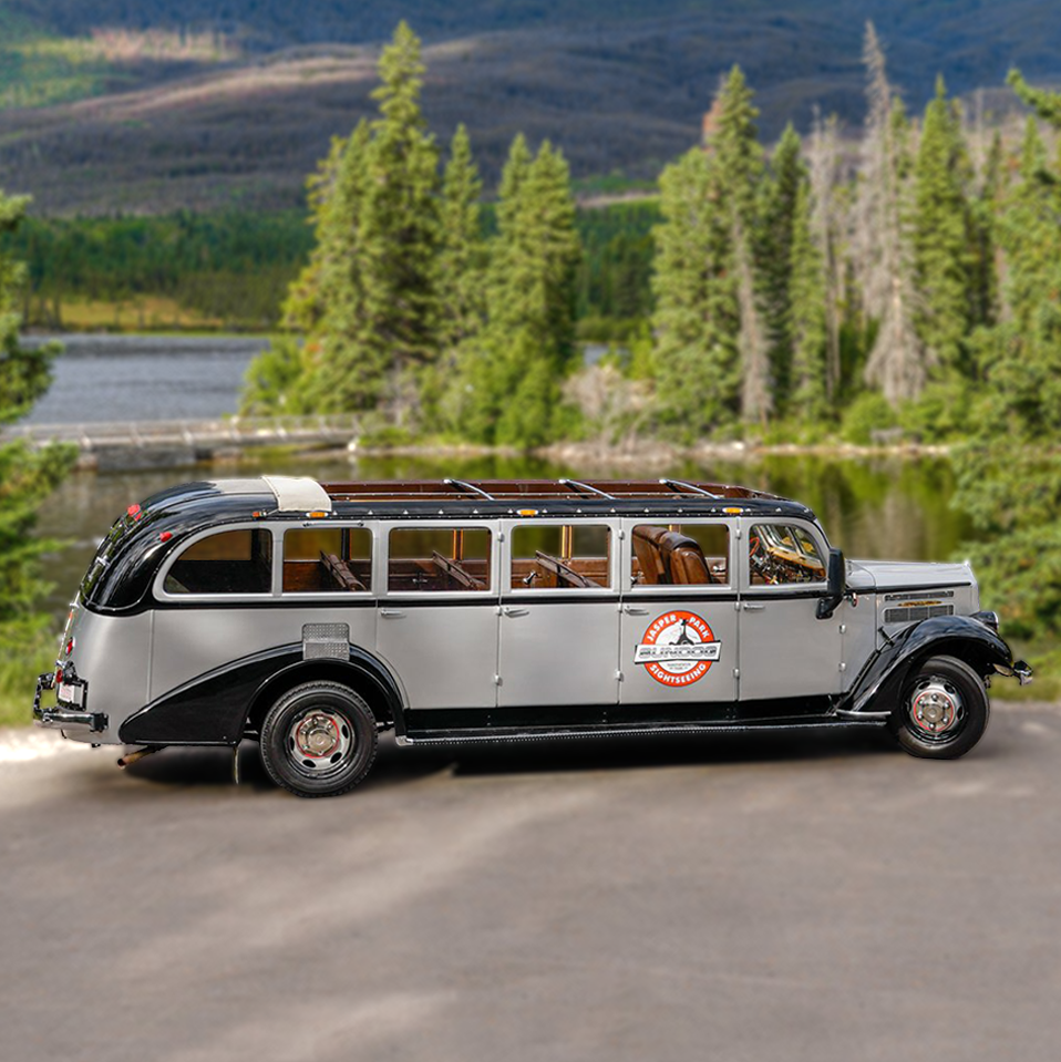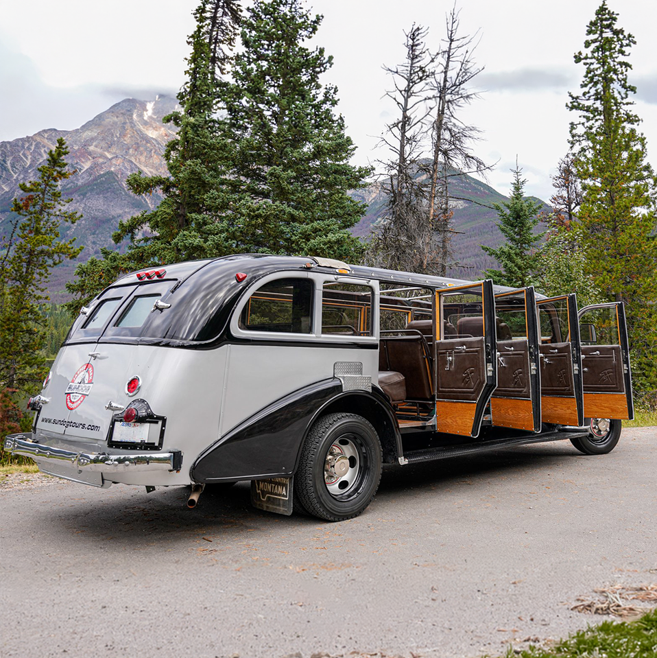 This particular bus began its service life in Yellowstone National Park as a sightseeing vehicle, and remained in service there until these buses were taken out of commission by the National Parks Service in 1959. It appears to have been sent to Glacier National Park in the mid-1960's to work as a sightseeing bus on the Going to the Sun road and remained there until at least the mid-1980's. The bus was sent to Krown Restoration outside Bozeman, Montana for a complete refurbishment in the mid-1990's.