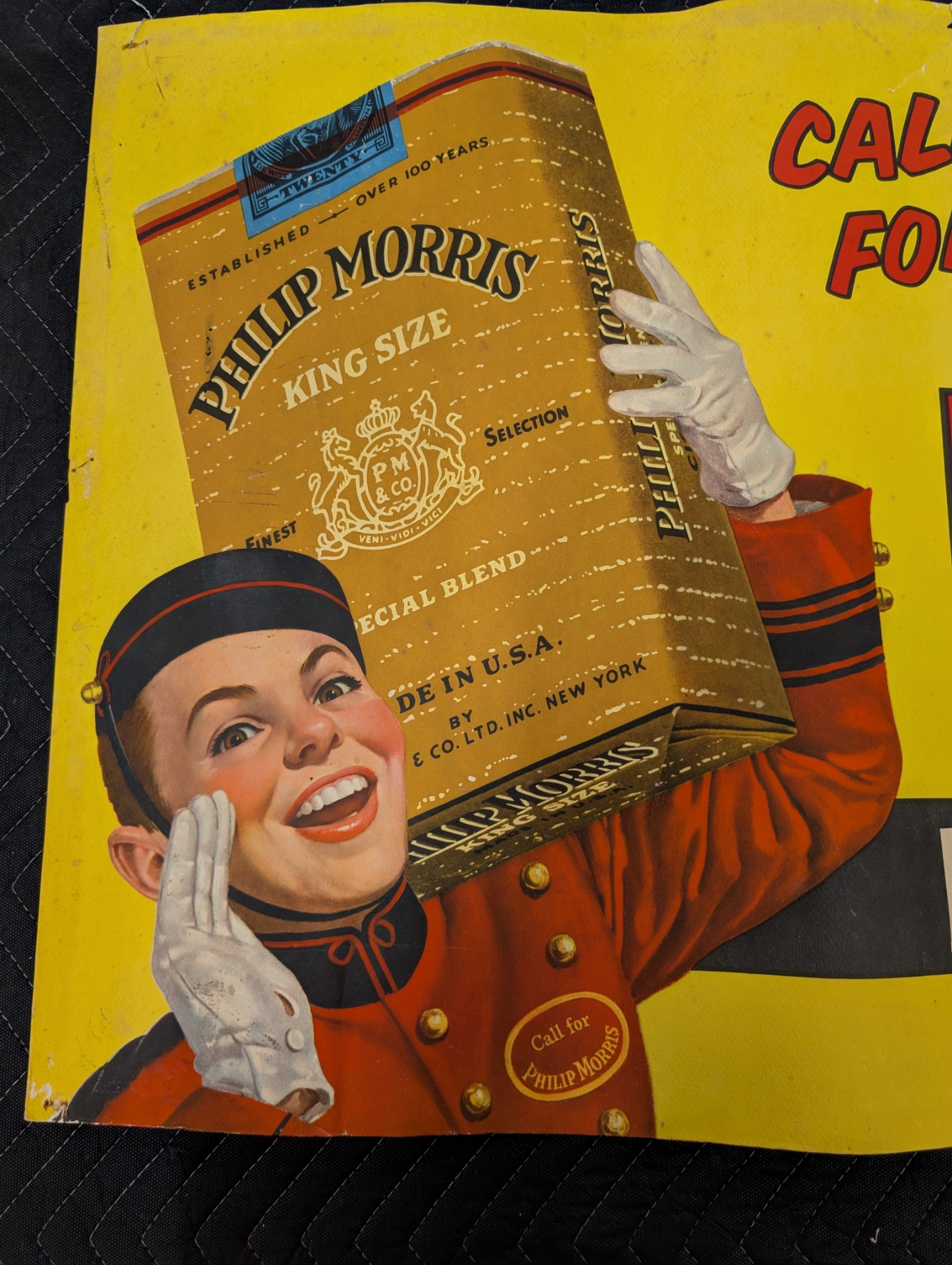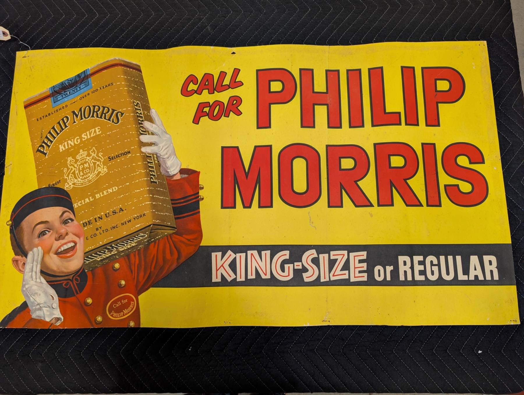 1940s PHILIP MORRIS CANVAS TOBACCO ADVERTISING SIGN - EXTREMELY RARE