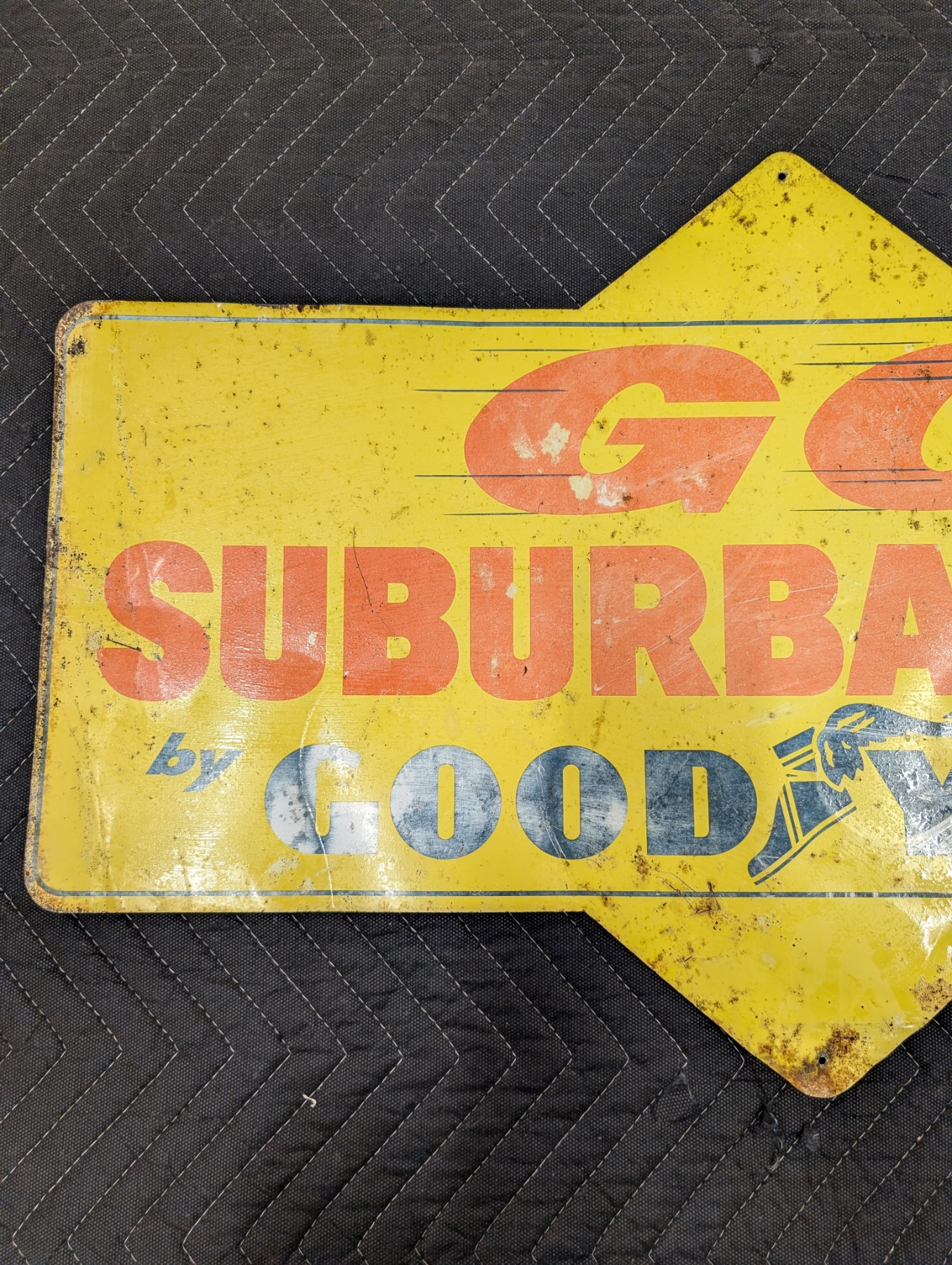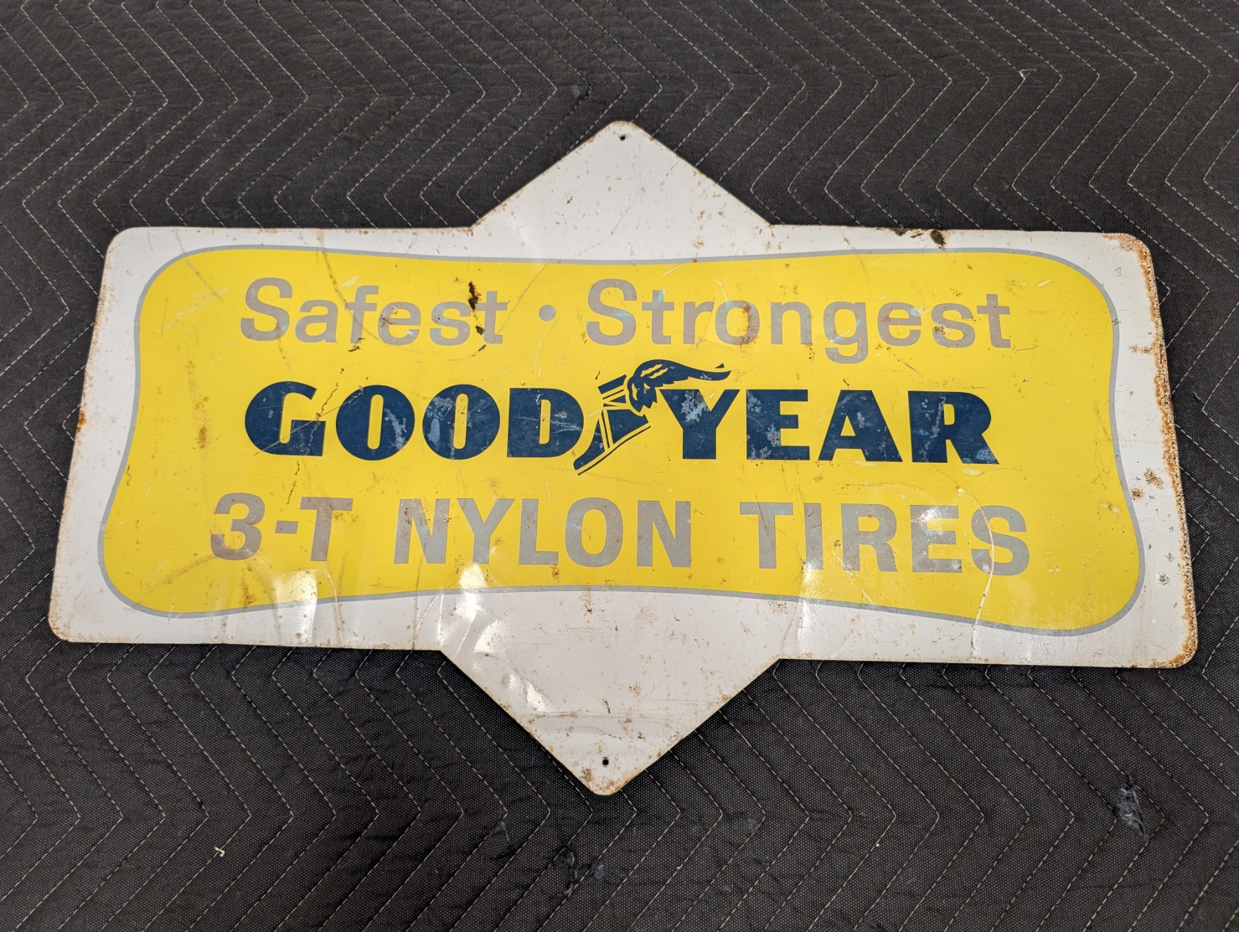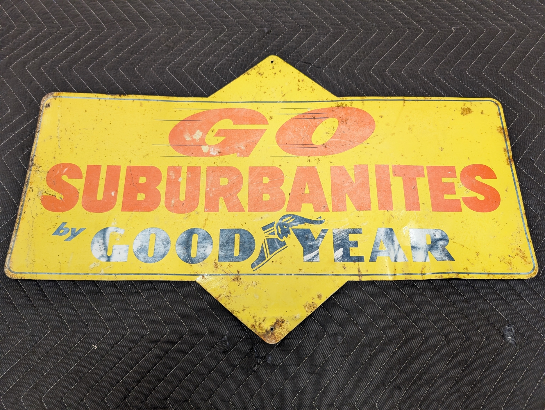 1950s Extremely rare double sided Good Year metal tire insert! Impossible to find, Go Suburbanites and 3-T Nylon tires insert! 28 inches by 17.5 inches!