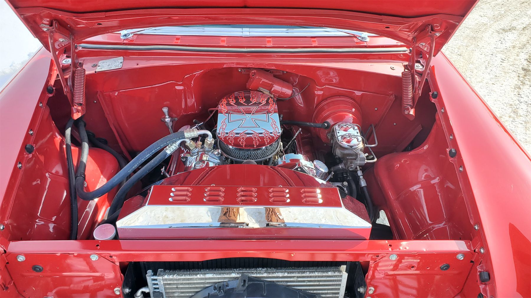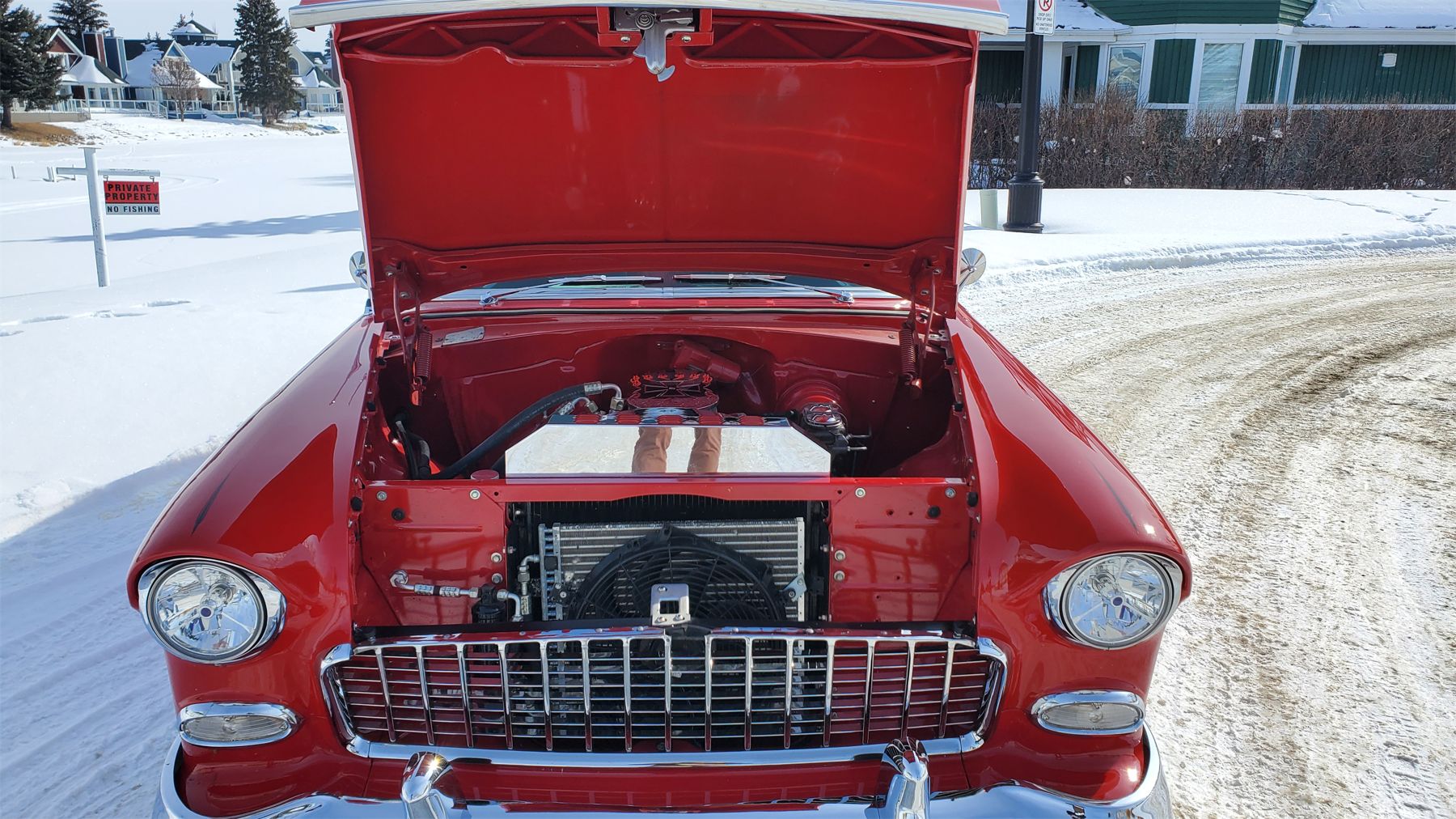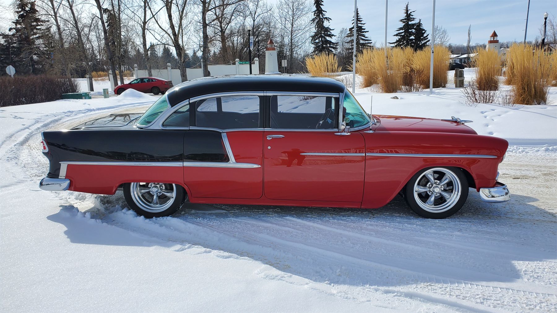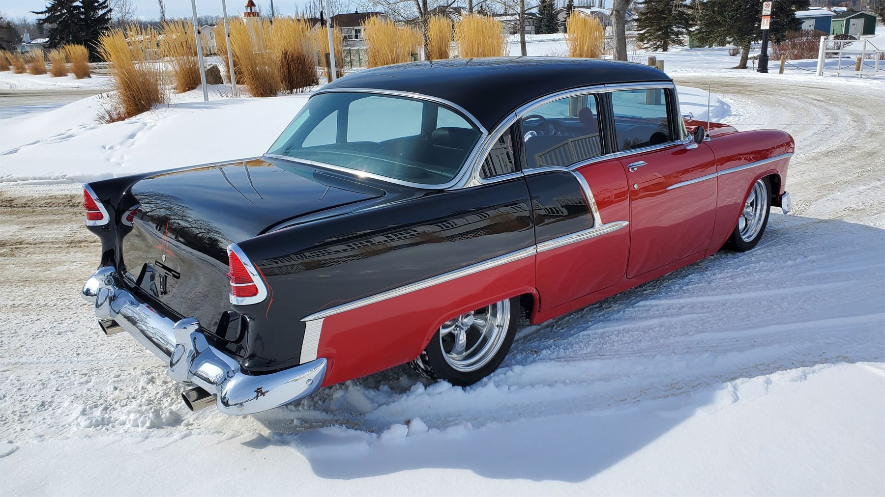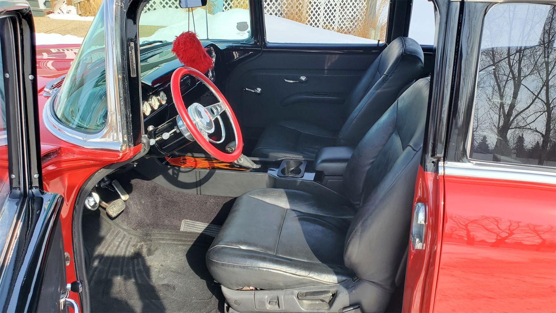 The 1955 Chevrolet Belair is a classic American car that has become an icon in the automotive world. This model comes in a striking black and red two-tone color scheme accentuating its sporty and stylish appearance. Under the hood, the car is powered by a 350 cubic inch V8 engine that delivers a respectable 400 horsepower. The TCI TH400 automatic transmission allows for smooth shifting and effortless acceleration. The exterior is enhanced by classic features such as the iconic Chevrolet grille and chrome accents. The interior of this car is a standout feature, featuring a stunning black color scheme that exudes timeless elegance. The seats are upholstered a black vinyl, providing a comfortable and luxurious driving experience. The Belair was known for its smooth ride and handling, making it a popular choice for drivers who wanted a comfortable and stylish car. The car also features power steering and power brakes, making it easy to maneuver and stop. Overall, the red and black 1955 Chevrolet Belair 350Cui automatic with a black interior is a classic car that embodies the spirit of American automotive design and engineering.