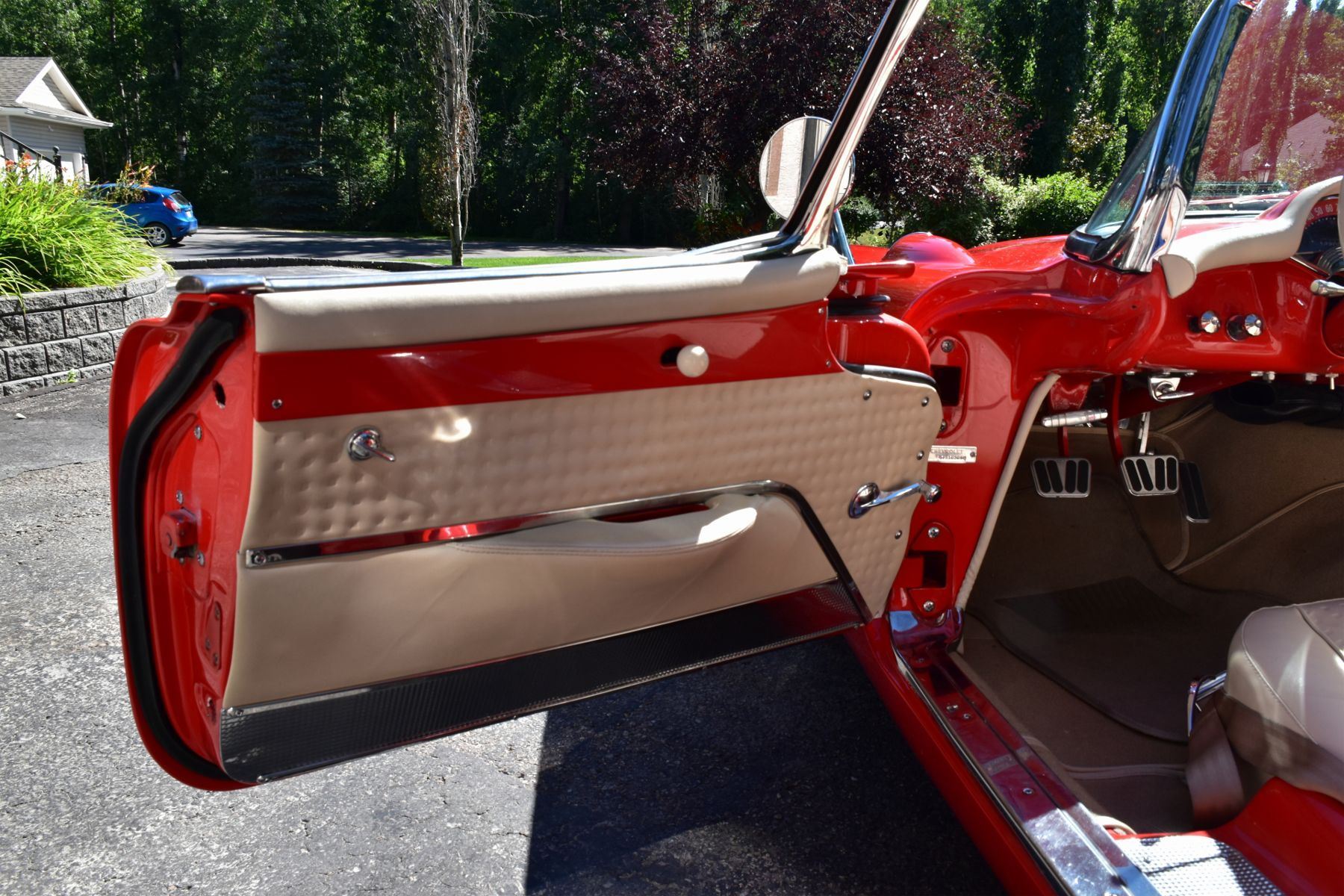 This Corvette is ABSOLUTELY immaculate, it has undergone a full nut and bolt, 3 year restoration with everything from paint to bodywork to engine and more! This car shows amazing from every angle, this corvette is finished in a beautiful Viper Red with the cove behind the front wheel being wrapped white. This car has tons of documentation and multiple appraisals as well as photos documenting the entire build. There is also a red painted hard top that goes with this car that just adds to the sleek look!