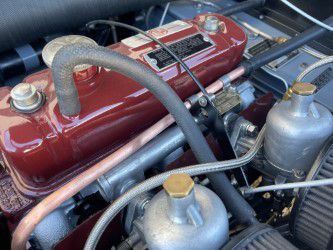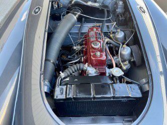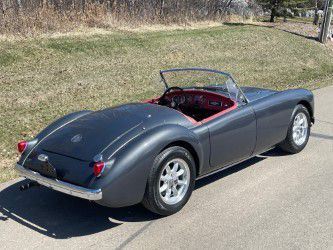 FRESH RESTORATION ON AN INCONIC MGA ROADSTER. COMPLETE BODY OFF RESTOR AND BEAUTIFULLY FINISHED IN CLASSIC DEEP SEA SILVER METALLIC EXTERIOR PAINT COMPLIMENTED WITH RED LEATHER BUCKET SEATS INTERIOR. AWARDED FOR ITS BRILLIANT DESIGN THE 57 MGA ROADSTERS ARE SKY ROCKETING IN VALUE. THIS EXAMPLE HAS A REBUILT DRIVETRAIN, ALL NEW TRIM, CHROME AND WHEELS. SPECTACULAR ENGINE BAY DETAIL ON ITS ORIGINAL 1489CC 4 CYLINDER ENGINE AND 4 SPEED MANULA GEAR BOX