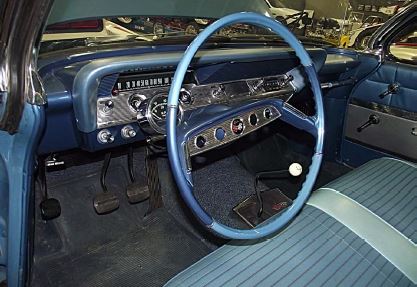 Comes with factory steel wheel covers, Hercules white wall tires, dual exhaust, factory four-speed transmission, correct code colour 912 jewel blue with blue cloth and vinyl code 841 interior.