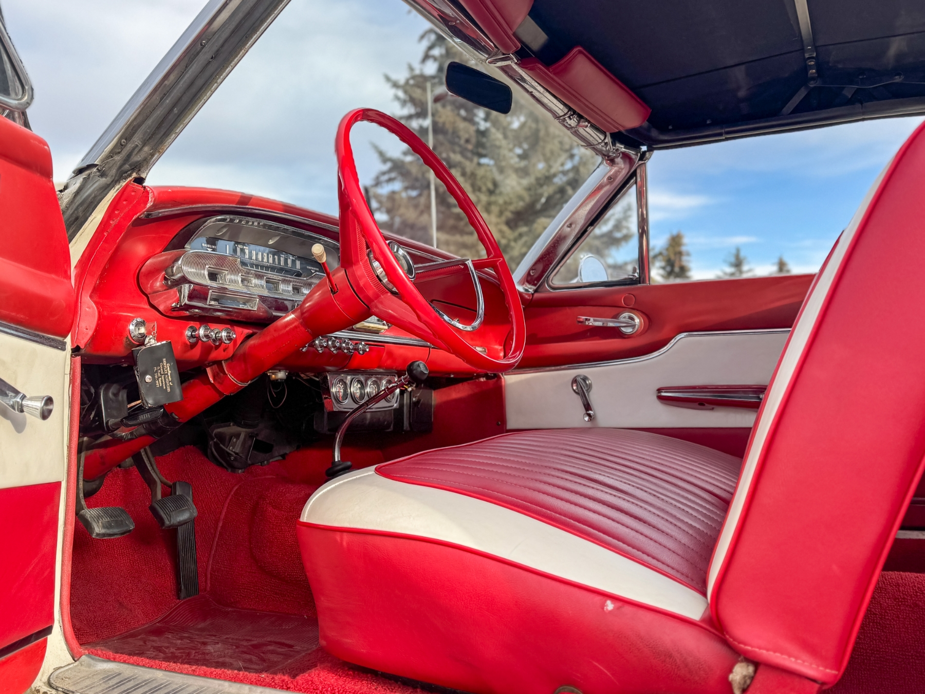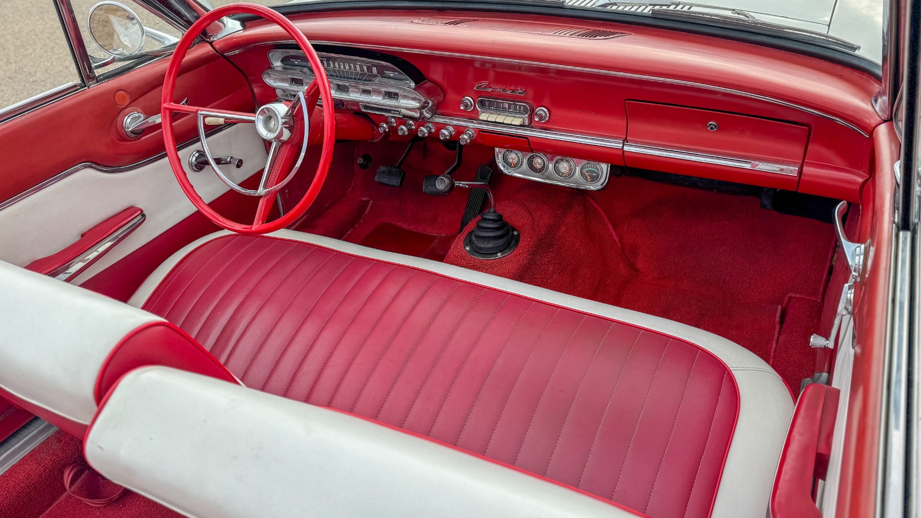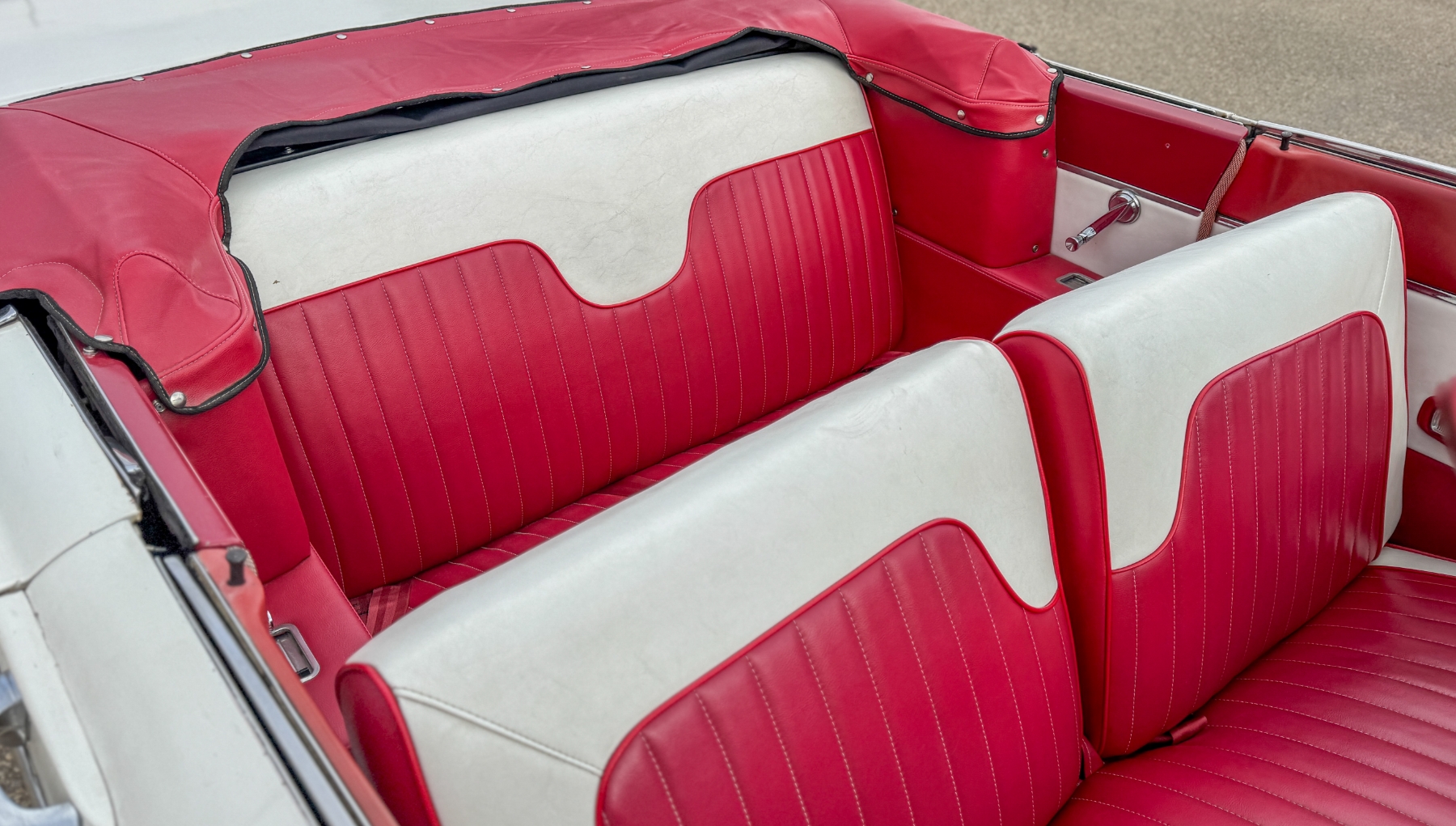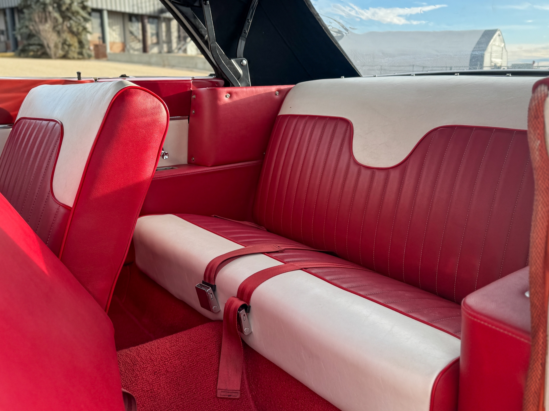 1963 Mercury Comet Convertible factory 170 cu in inline-six paired with the rare factory 4-speed manual transmission. Canadian-built in Wimbledon White over red and white interior, featuring a brand-new black convertible top. A clean early-’60s convertible with a rare manual setup that stands out from the typical automatic examples.