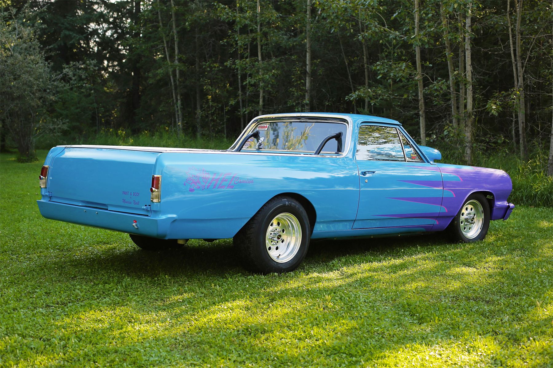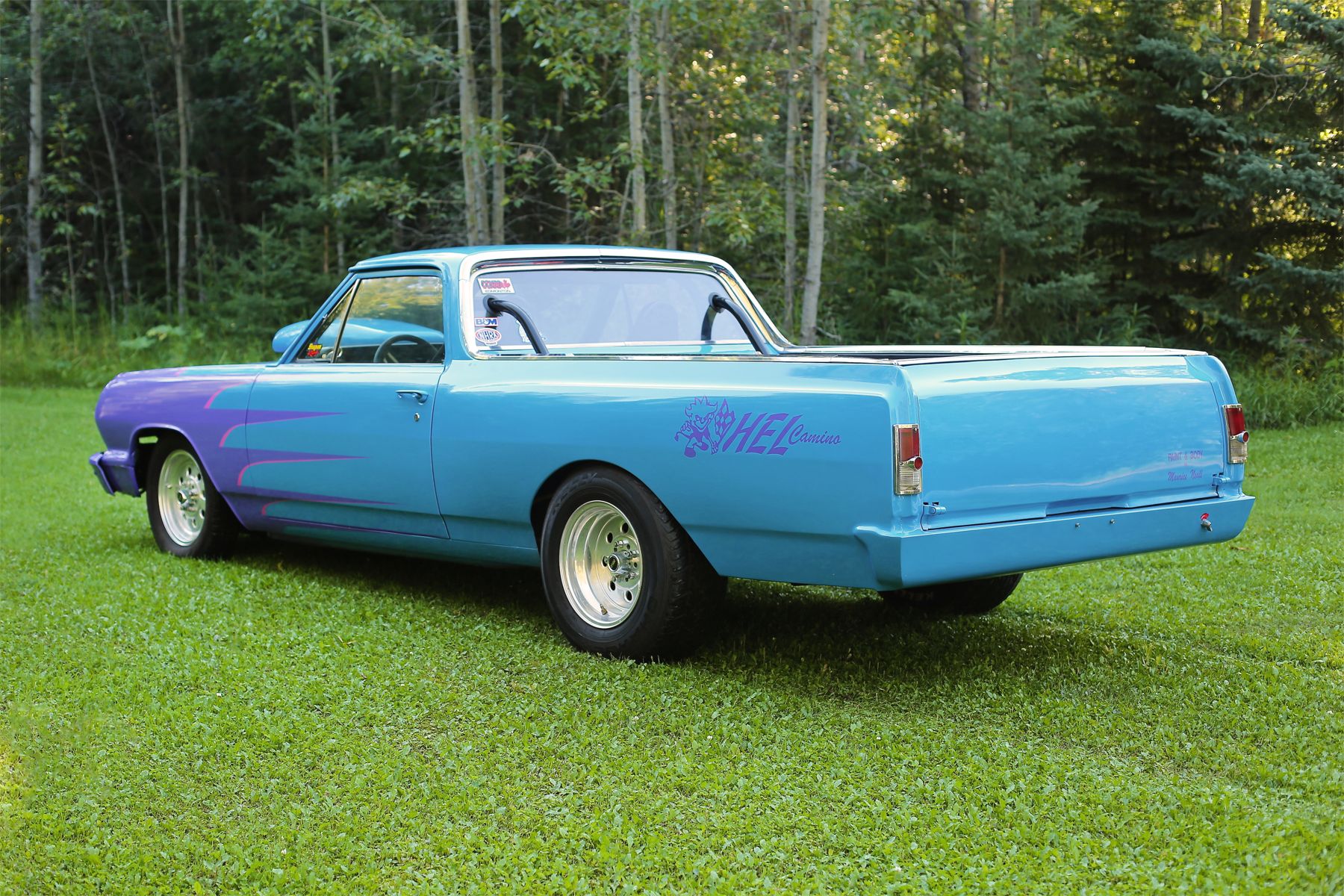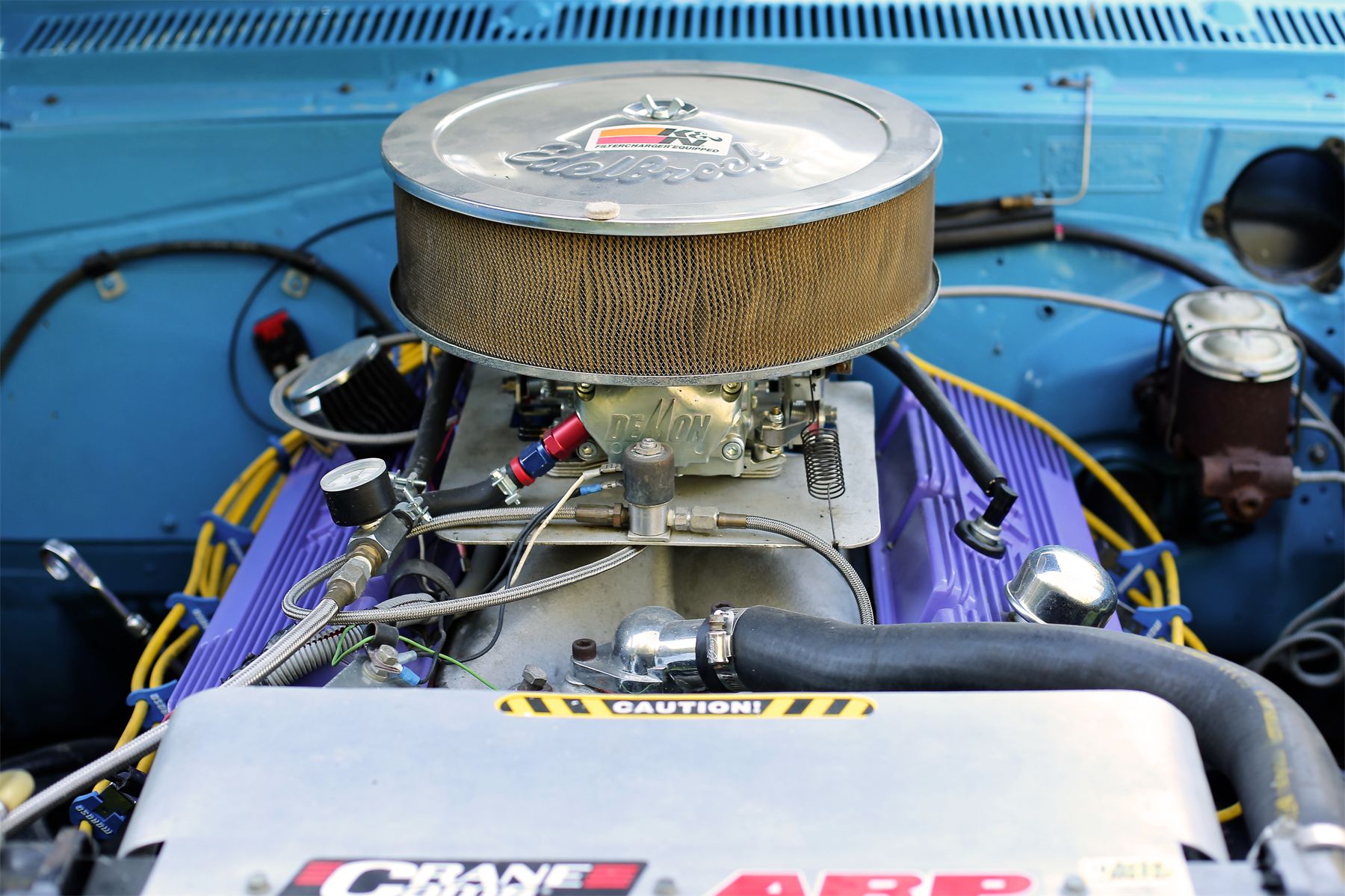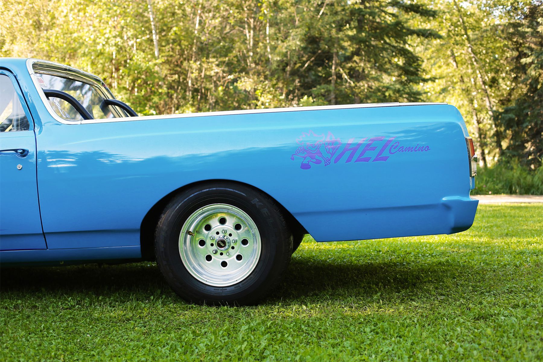 Fuel mix is handled by a four-barrel Demon carburetor, and if you need an extra punch, there's an optional nitrous injection system. The Weld Wheels offer weight benefits, and the Kelly Charger tires provide the traction you need. It's also equipped with a 12-bolt Posi rear end featuring 411 gears. Racing bucket seats five point harness custom built suspension.