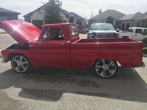 1965 Chevy C10 apache that has been fully restored. Has a supercharged performance 350 under the hood. truck has beautiful aftermarket 22inch wheels and a new wooden floor in the box. 3 speed automatic transmission.