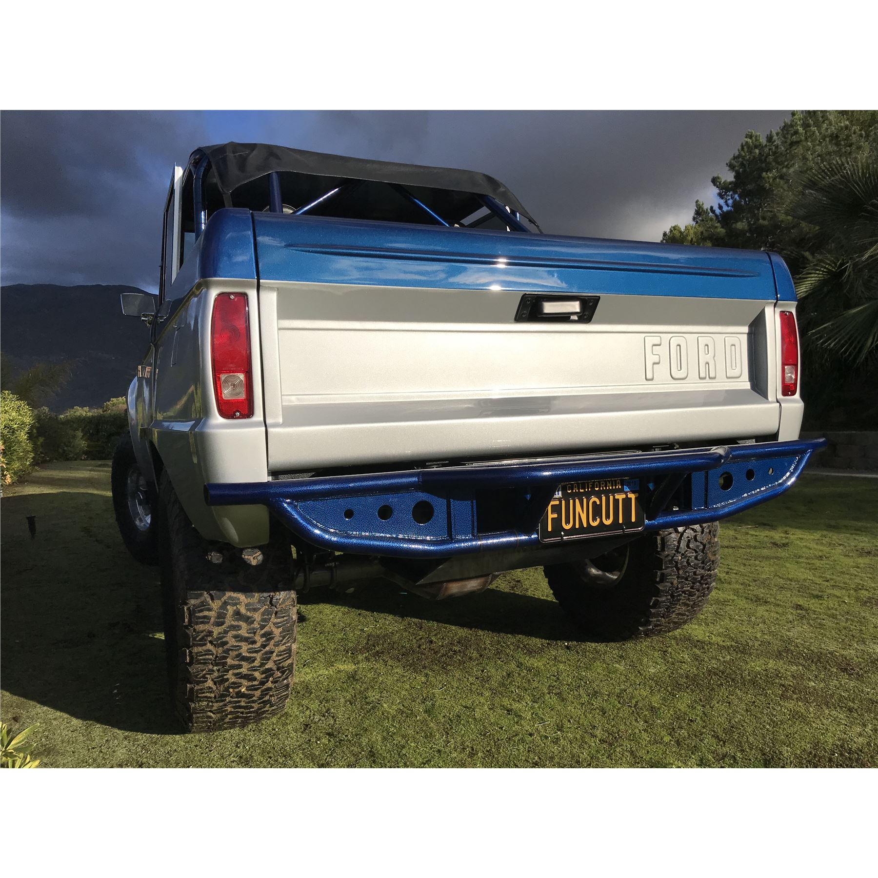 the body is slopped nose 1" for better visibility. Custom tube bumpers with skid plate and LED