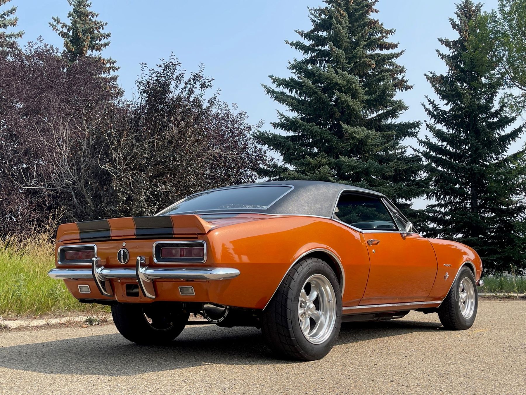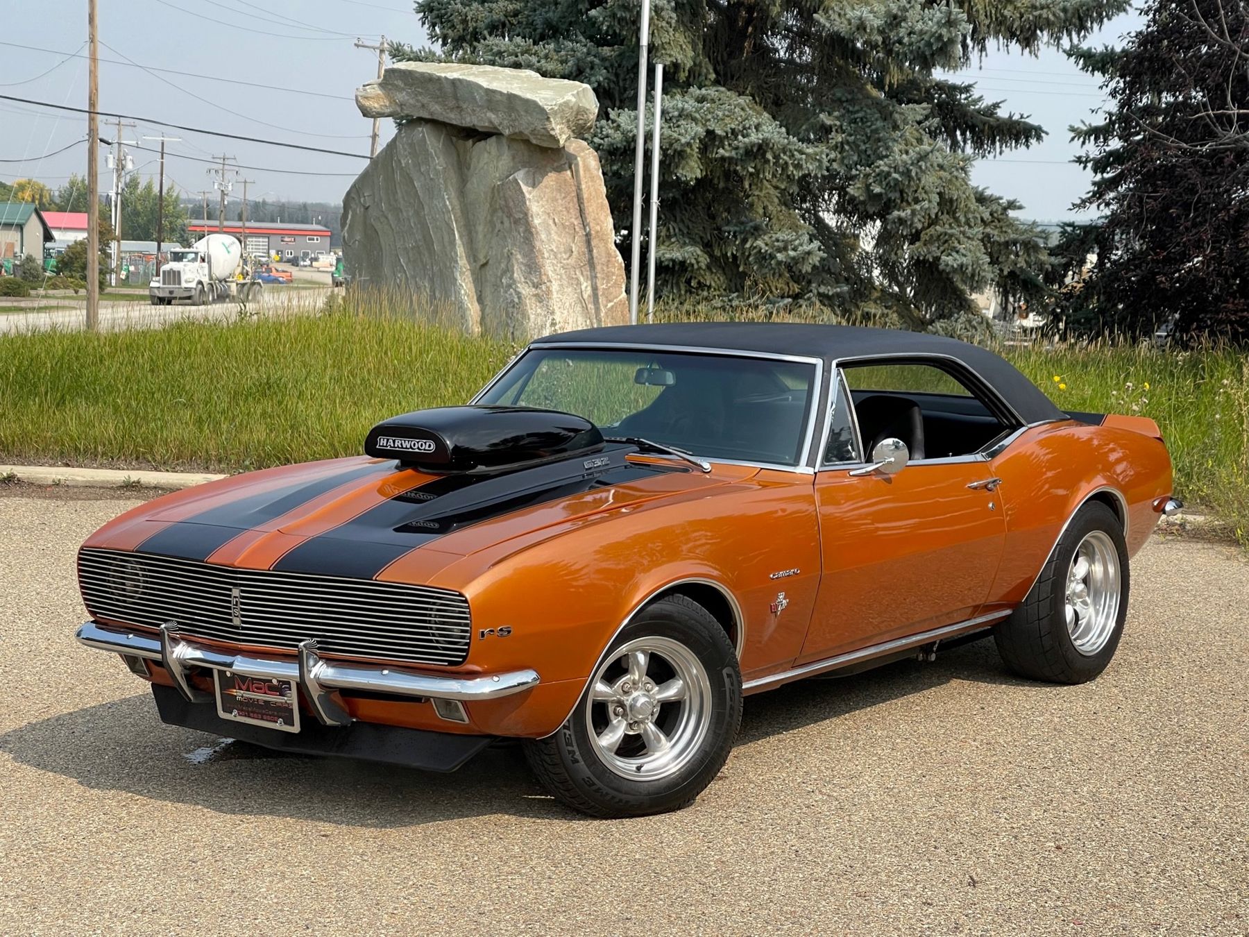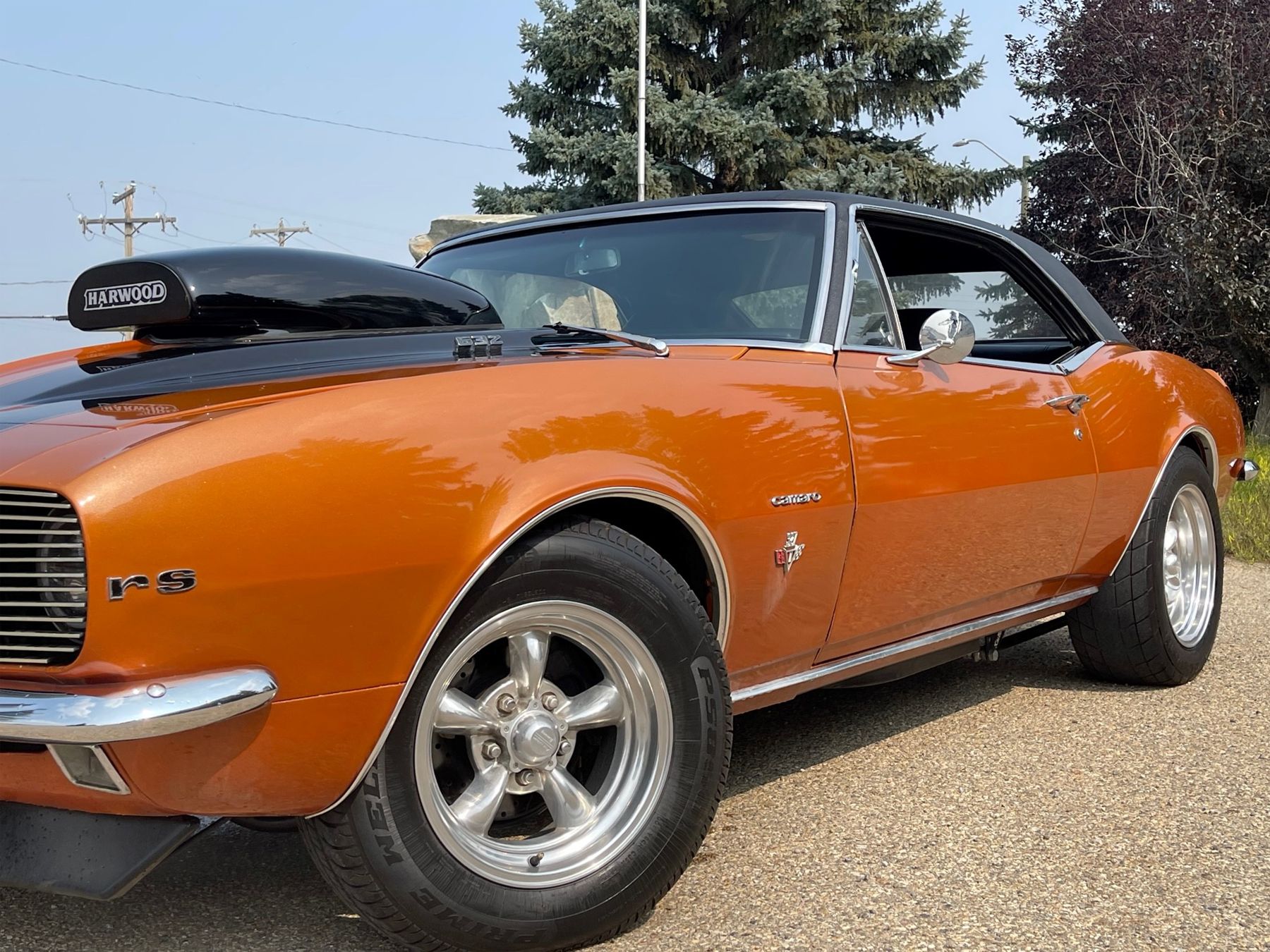 This 1967 Camaro RS is a beauty and a beast with its 632 C.I. Big block with 815 hp and over 750 foot pounds of tire shredding torque reliable and extremely powerful is surly to put a smile on anyone’s face that drives or rides in it ! The car has a beautiful paint and body Color is Sunburst orange with black stripes black vinyl top and black interior.