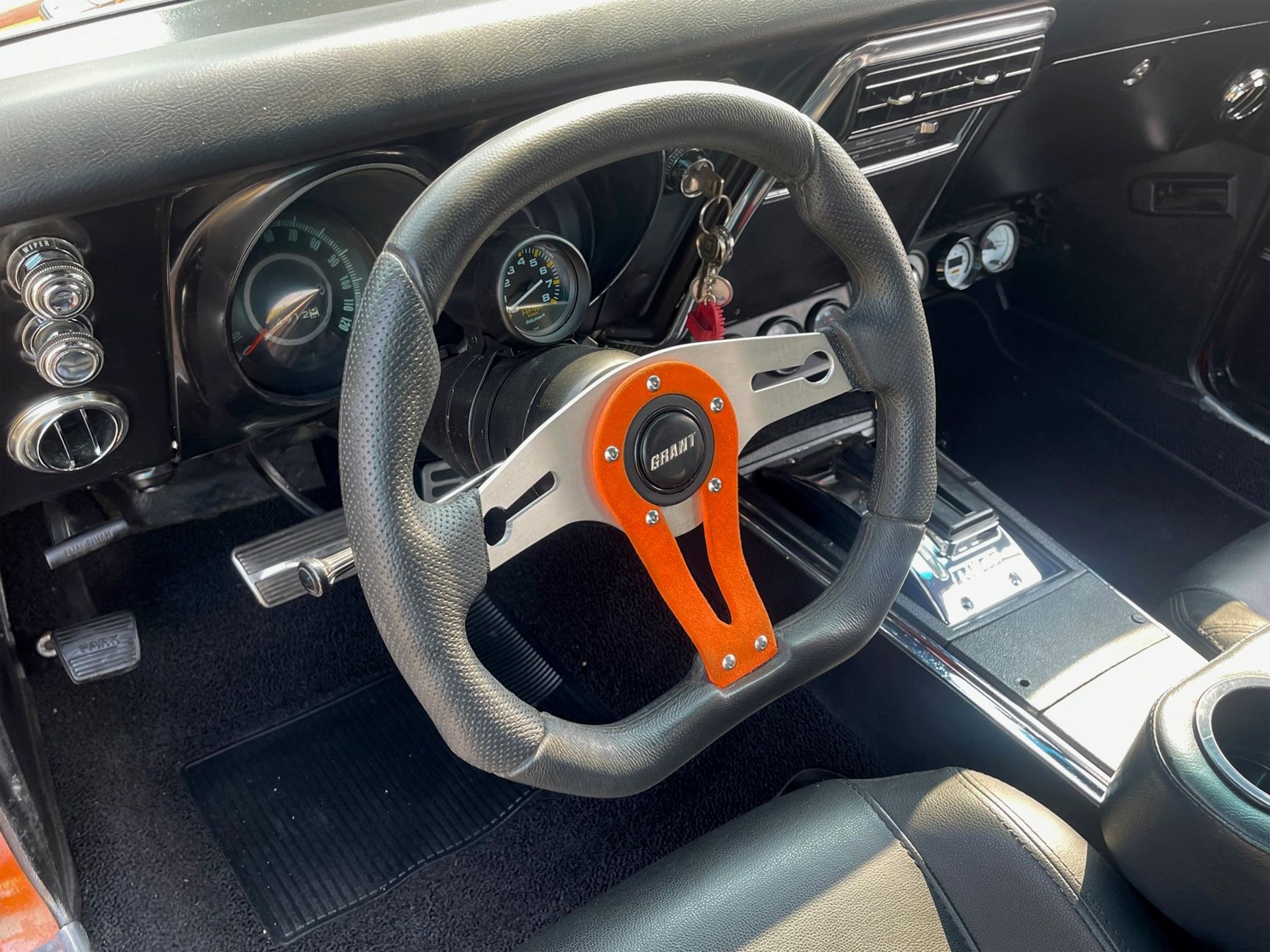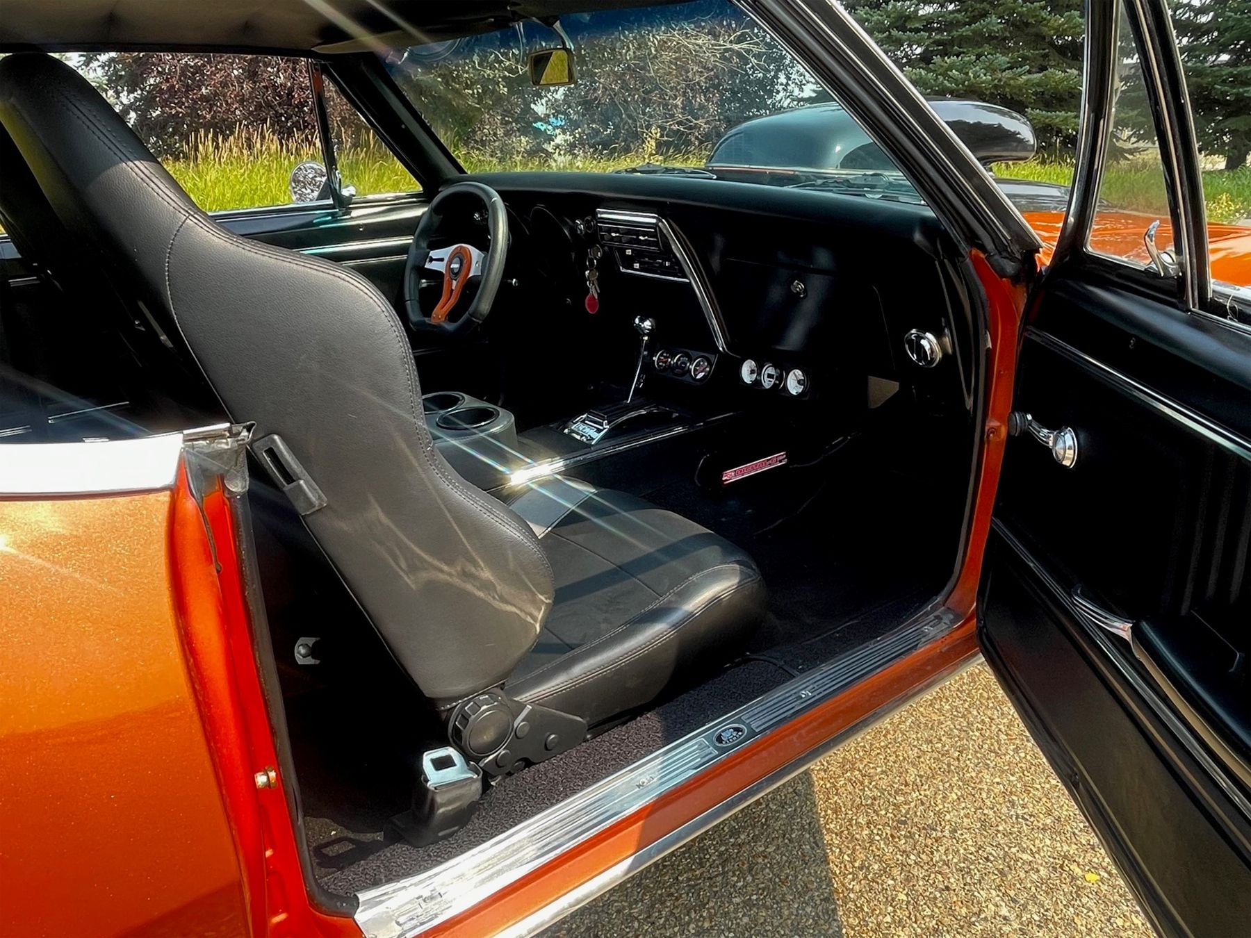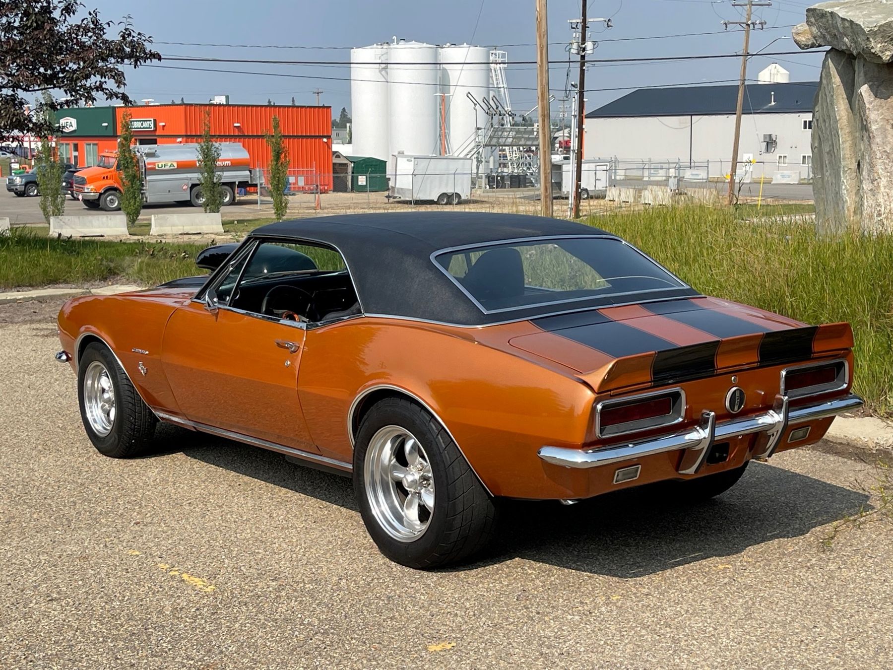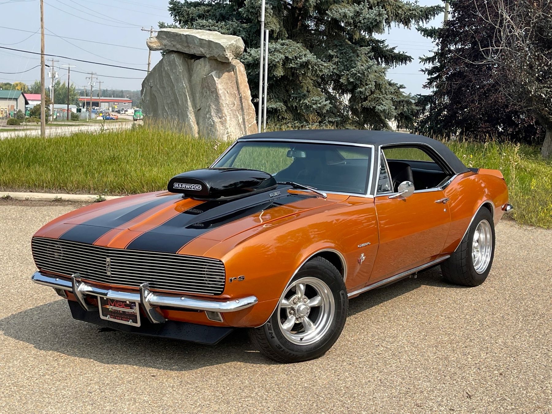 This 1967 Camaro RS is a beauty and a beast with its 632 C.I. Big block with 815 hp and over 750 foot pounds of tire shredding torque reliable and extremely powerful is surly to put a smile on anyone’s face that drives or rides in it ! The car has a beautiful paint and body Color is Sunburst orange with black stripes black vinyl top and black interior.