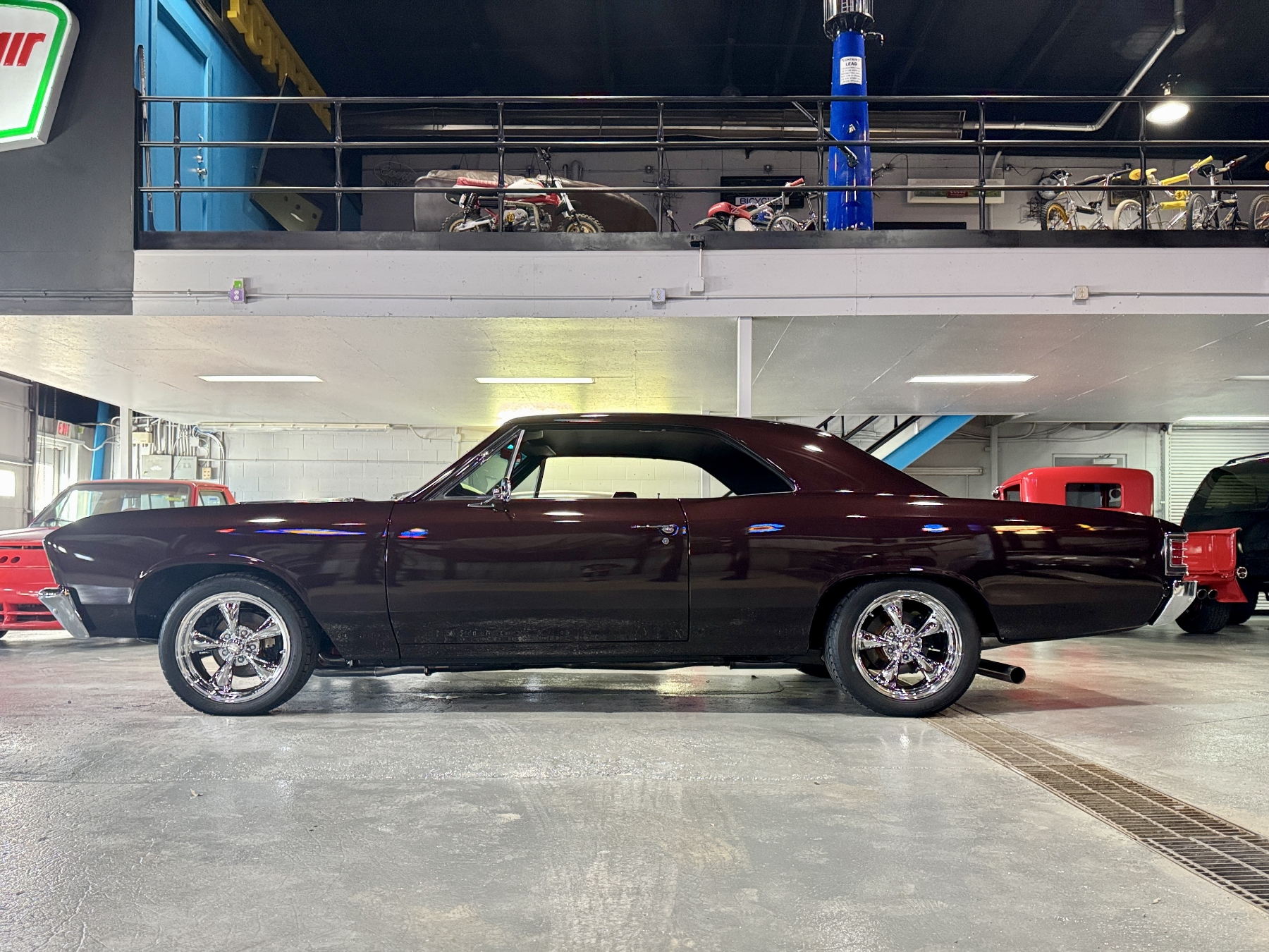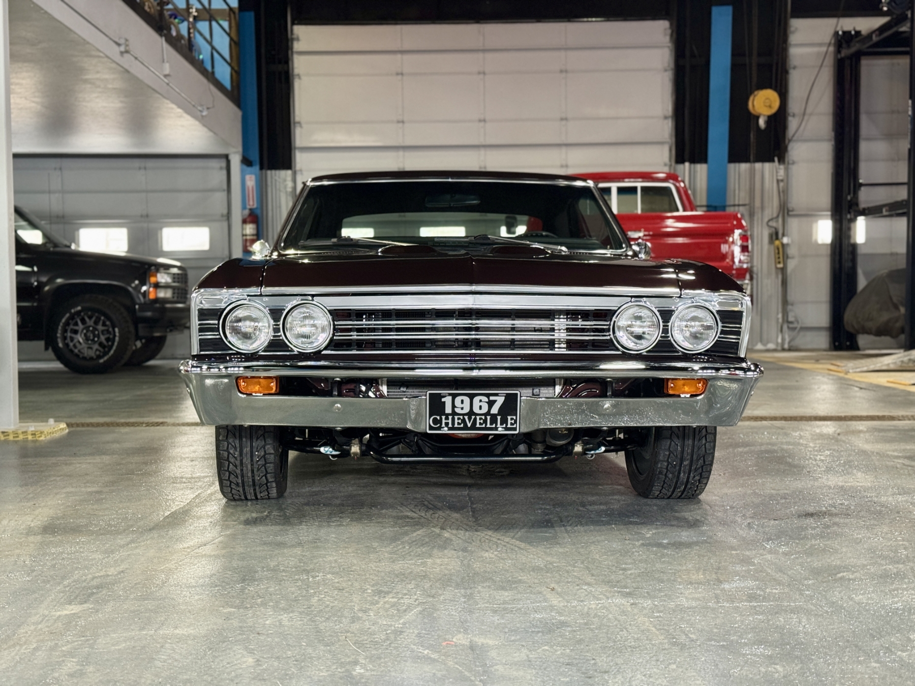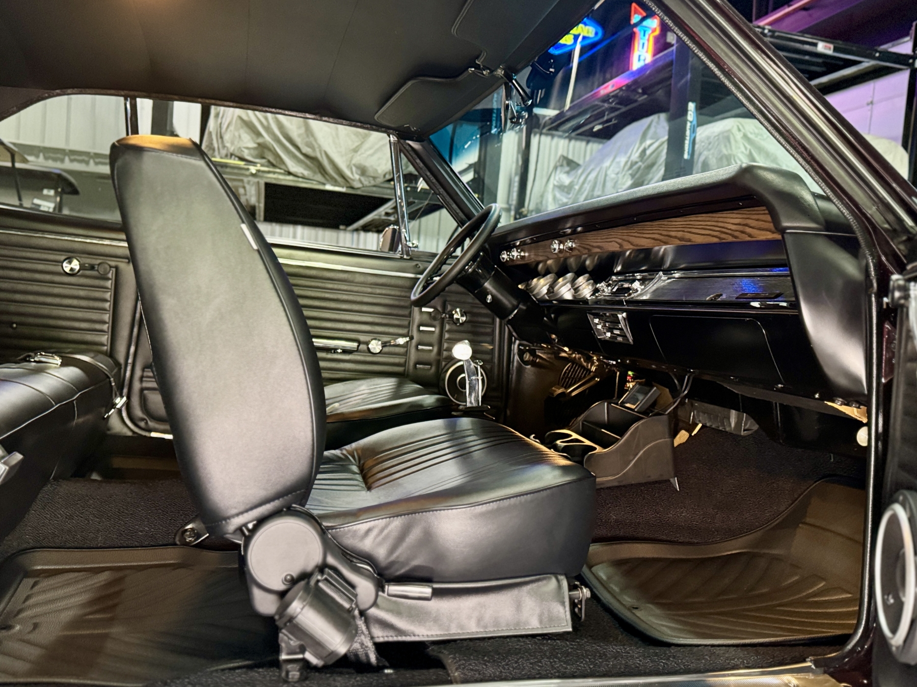 Stunning 1967 Chevelle Malibu, professionally completed frame-off restoration with less than 100 km driven since completion. Finished in a deep Black Cherry Pearl over an immaculate body featuring all new Goodmark Industries panels and a factory-style big block hood. This car blends classic muscle looks with modern drivability and performance upgrades throughout.
