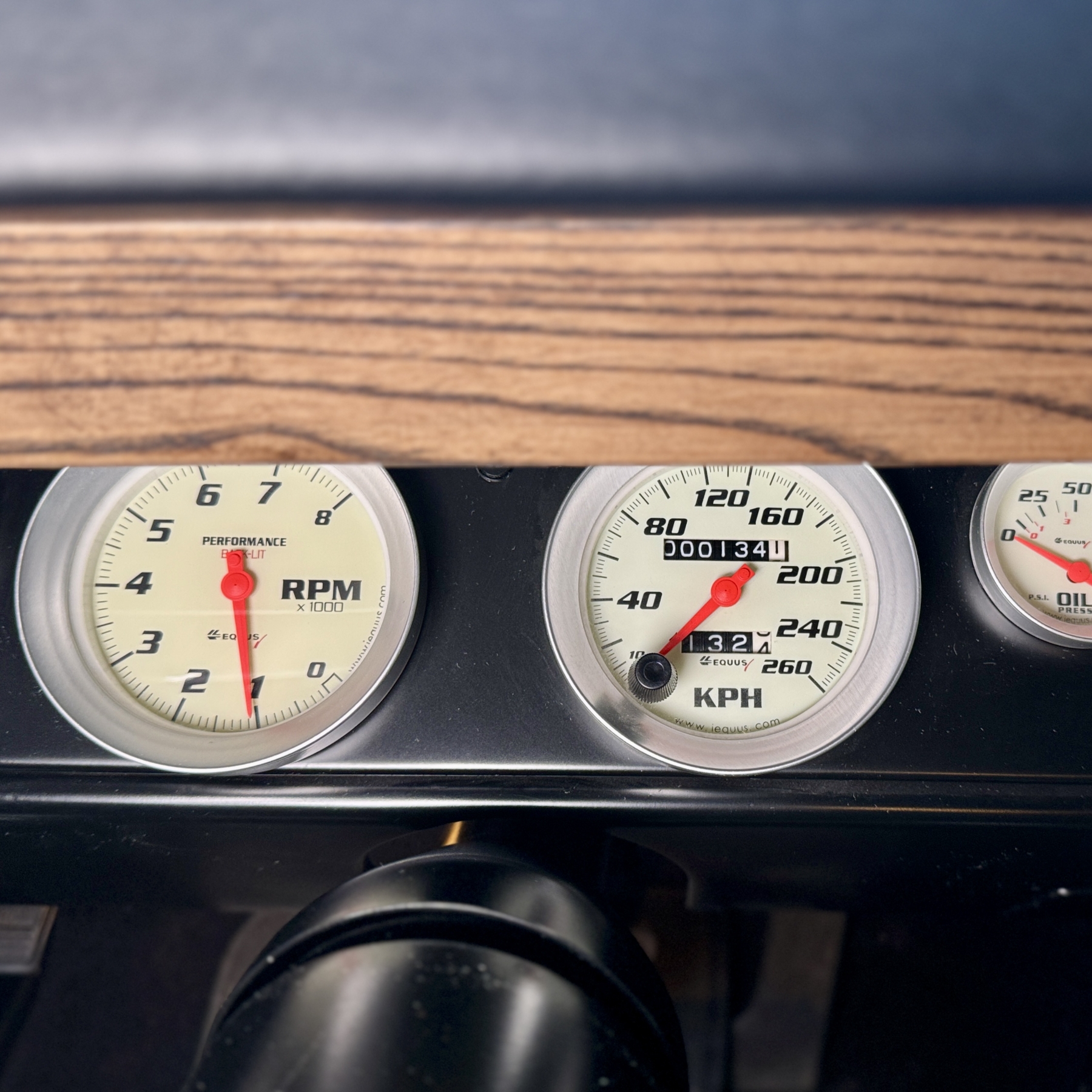 * Equis gauges: tach, speedometer, fuel, oil pressure, voltmeter