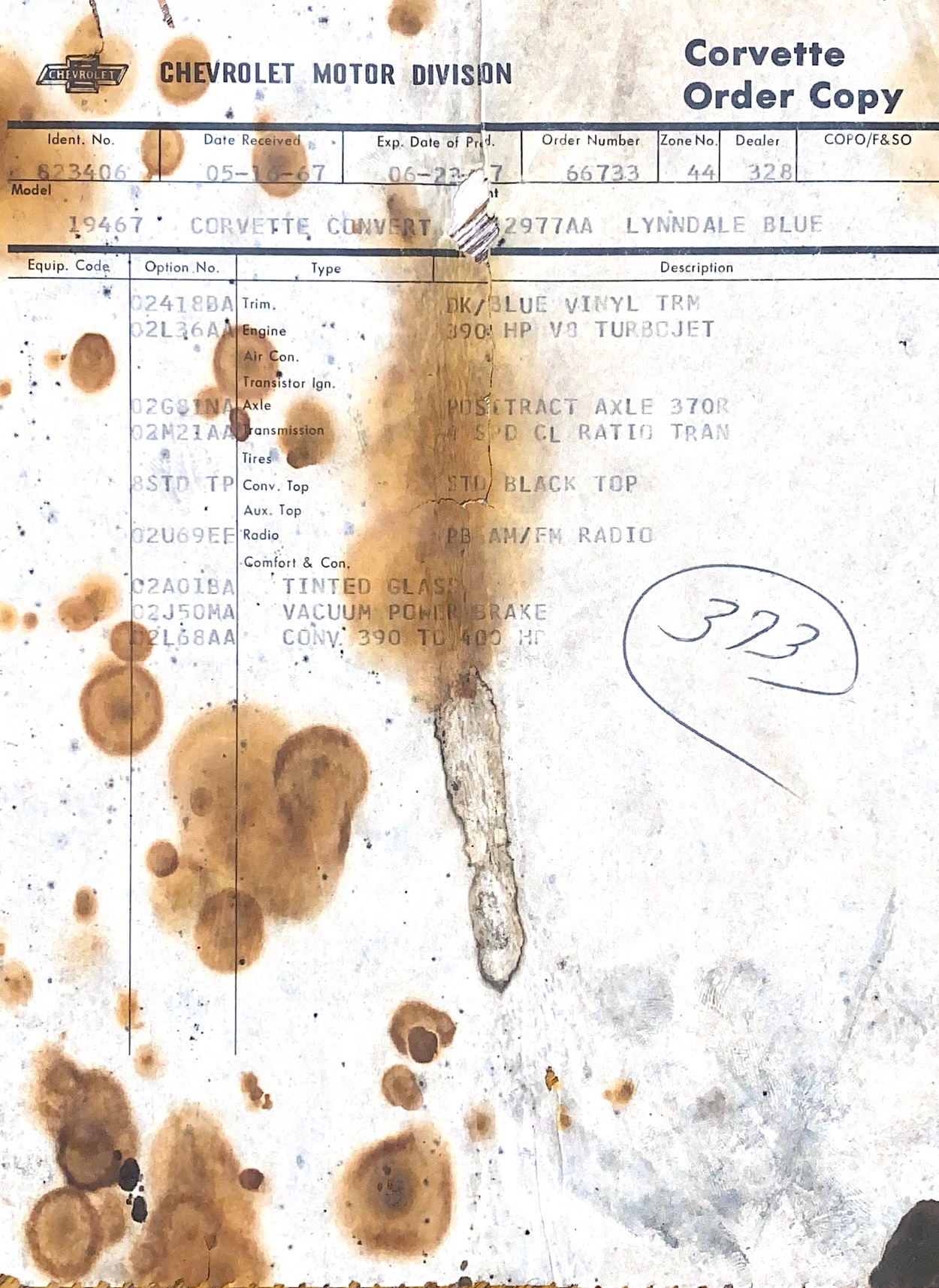 THIS STUNNING VETTE STILL RETAINS ITS ORIGINAL VIN AND DATA TAG