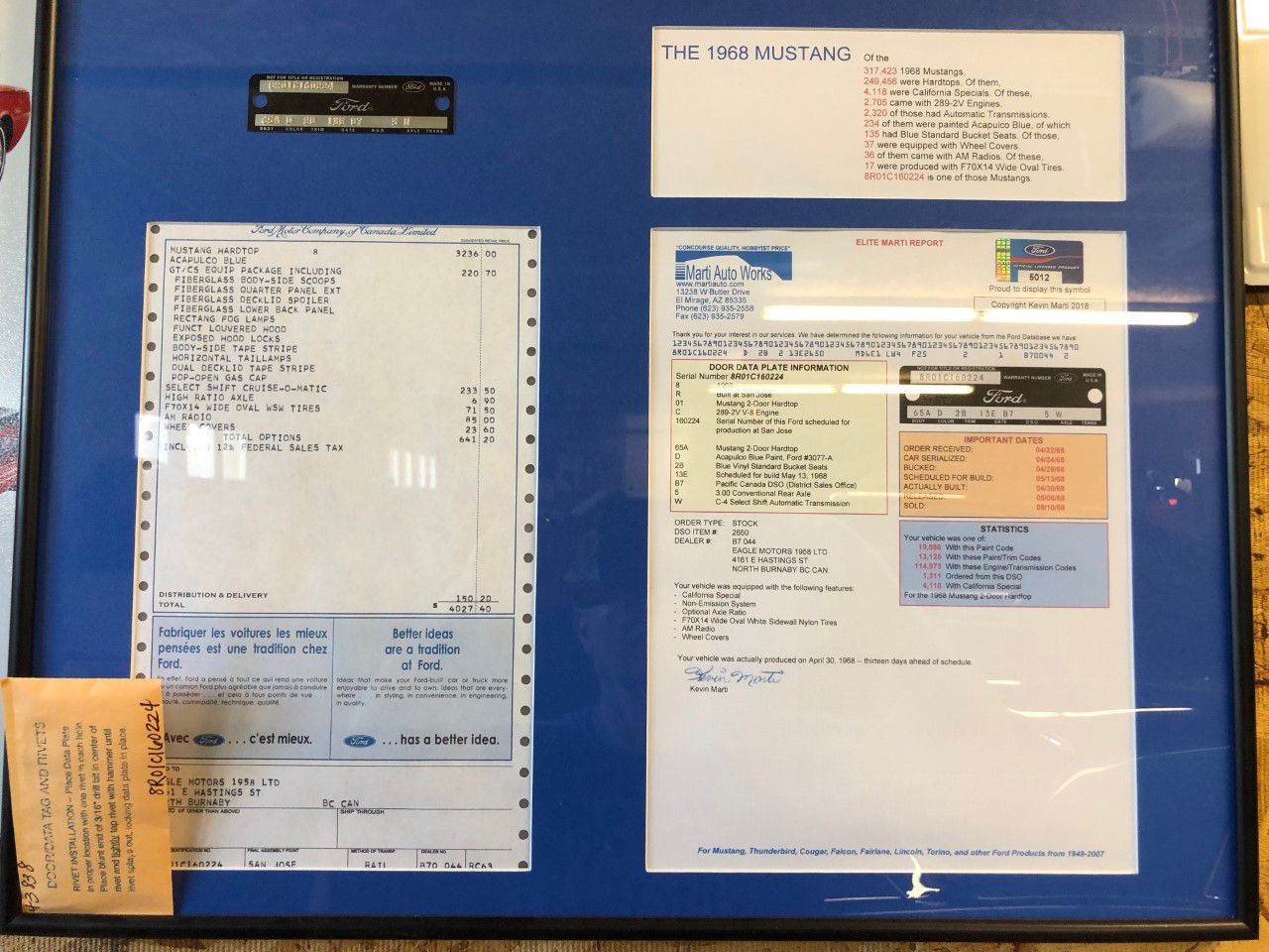 Extremely rare factory California special Optioned GT Ford mustang two-door coupe. Documented by its deluxe Marty report. Beautifully finished in its factory color code Acapulco Blue exterior the most sought after color combination. Complimented with its factory GT California special
