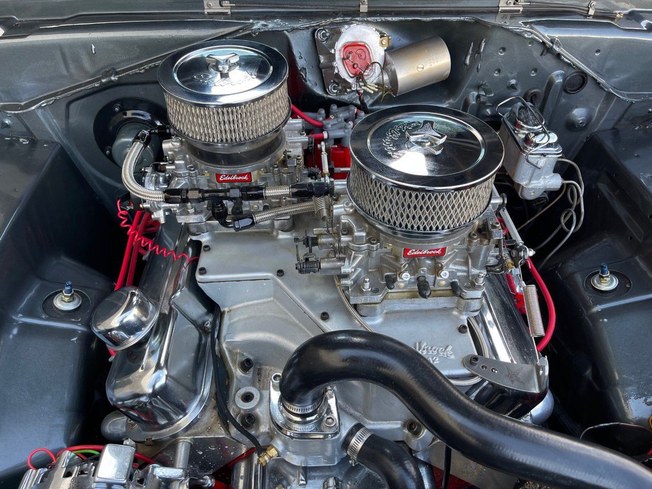 CUSTOM BUILT THROUGH EDLEBROCK CROSSRAM INTAKE MATCH PORTED TO HEADS AND FLOWED, TOPPED WITH TWO EDLEBROCK 500 CFM CARBS