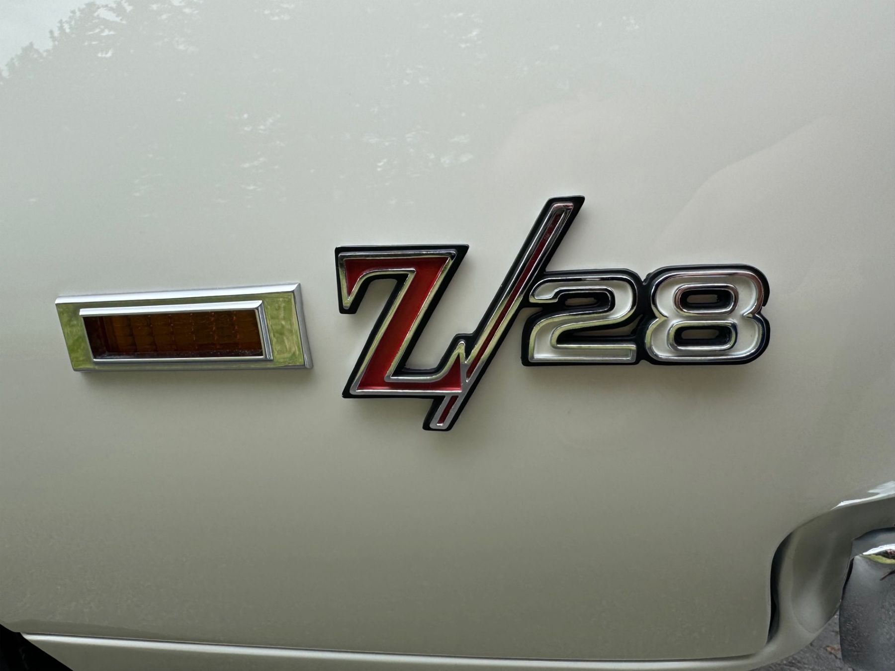 Very rare x77 factory Z28 completely restored inside and out with all its factory options including Dover white exterior. This car has gone through a complete restoration, does not have the correct factory equipped 302 but the complete car has been restored to look as factory as possible. Paint and body on this car is phenomenal, interior is refinished in its original black vinyl equipped with factory bucket seats and a console delete. This car was ordered as a very base Z28, which makes this car very rare being white and very little factory options. Own a piece of GM history, bid with confidence.