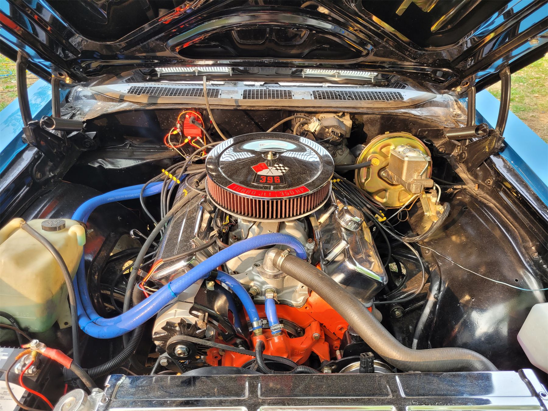 CAR WAS RESTORED AROUND 3 YEARS AGO, HAS EFI FUEL INJECTION SYSTEM, REBUILT 396 BIG BLOCK,4 SPEED ,POWER FRONT DISC BRAKES, TILT STEERING, 2.5" STAINLESS FLOWMASTER EXHAUST, ALUMINUM RAD WITH DUAL FANS.NEWER BRAKES AND FRONT END TIRES ETC. RUNS DRIVES AND SOUNDS GREAT