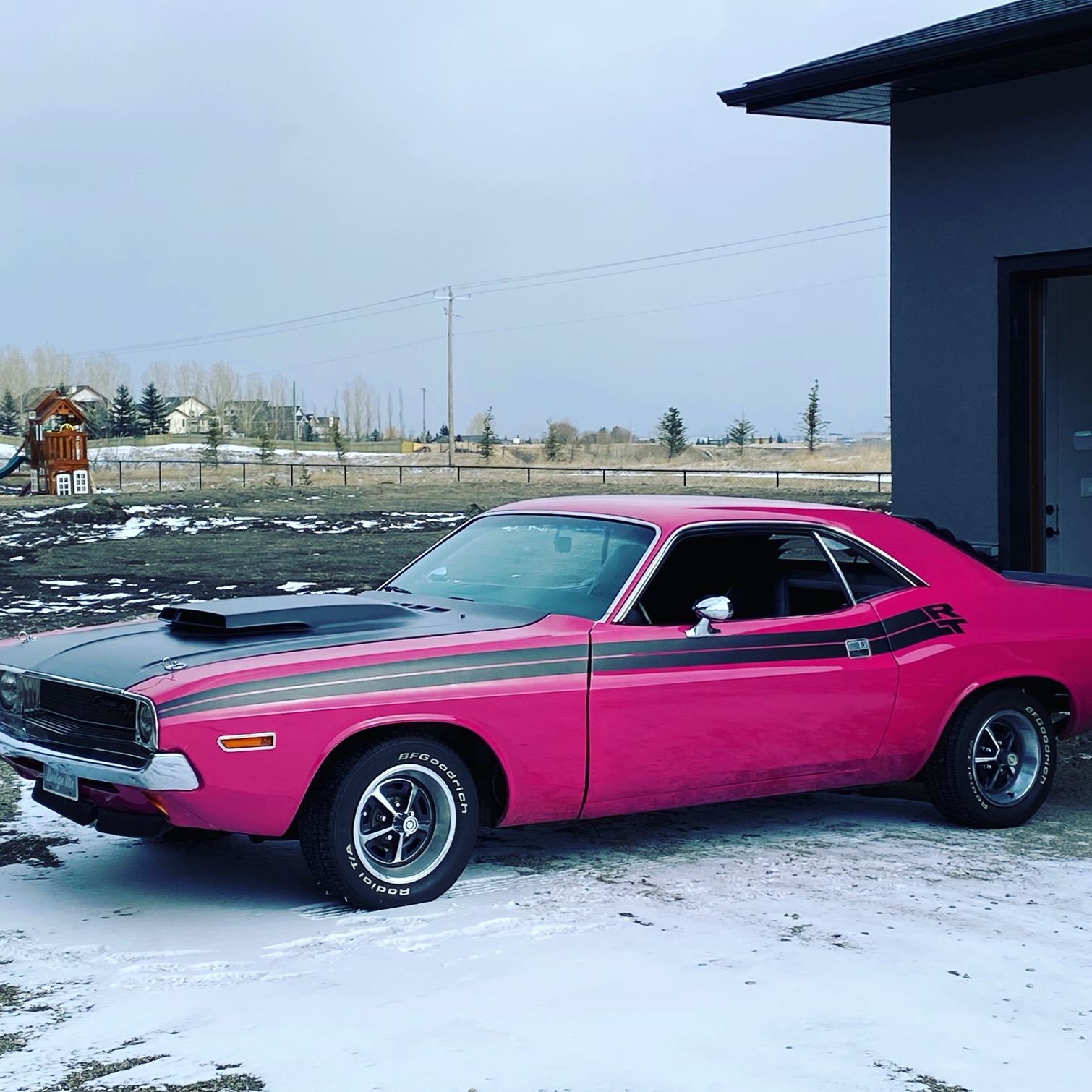 1970 Dodge challenger TA real deal H code 340 4 speed manual transmission this is a true FM three panther pink code exterior car with black interior trim the car has been nicely restored with a ground pound in high-performance engine build on the 340 the four-speed transmission shifts nicely the car is Alberta registered and located in Okotoks Alberta