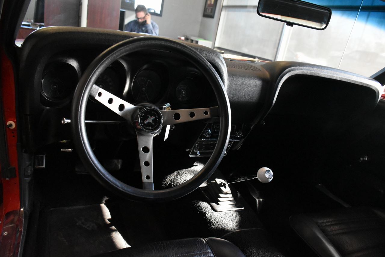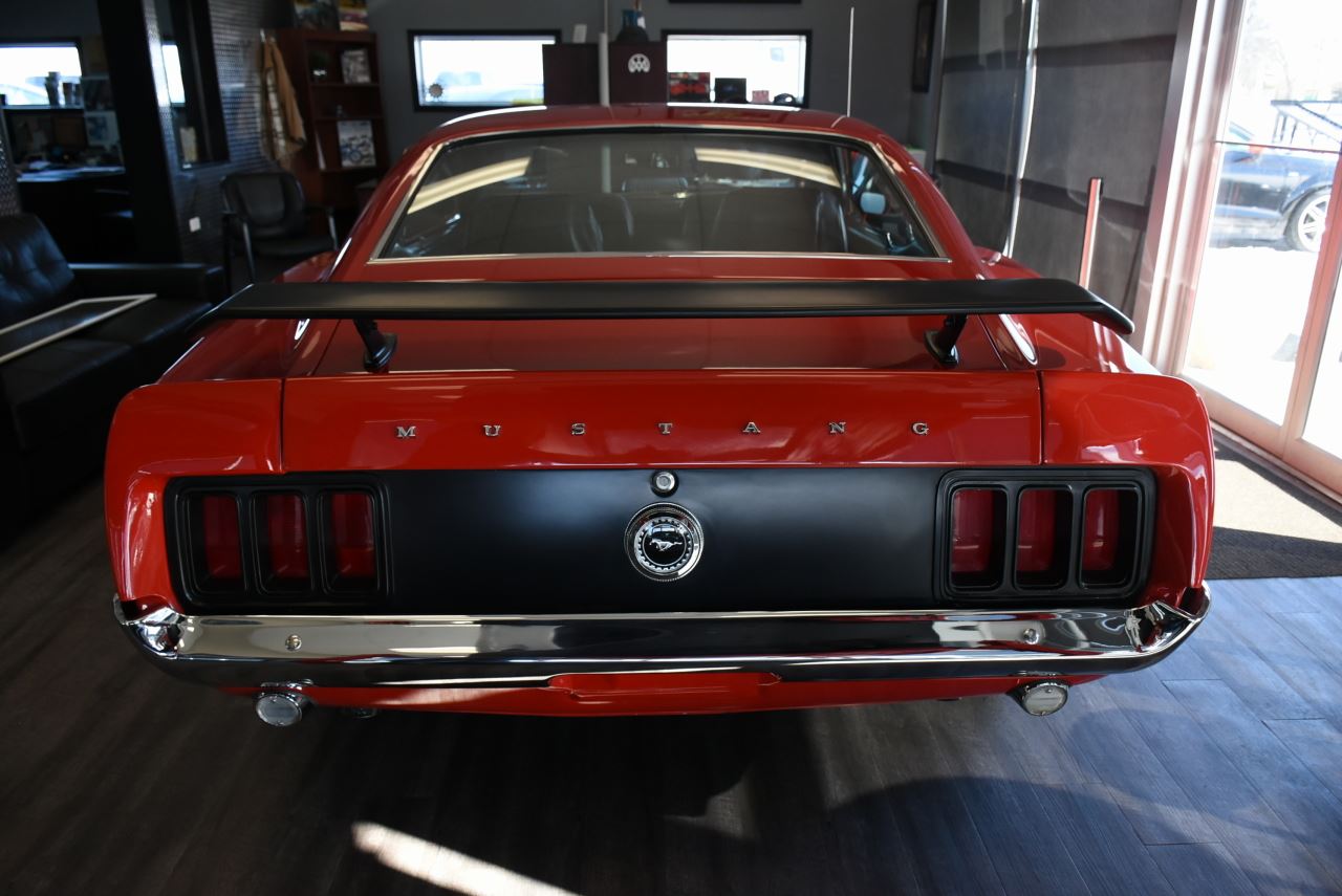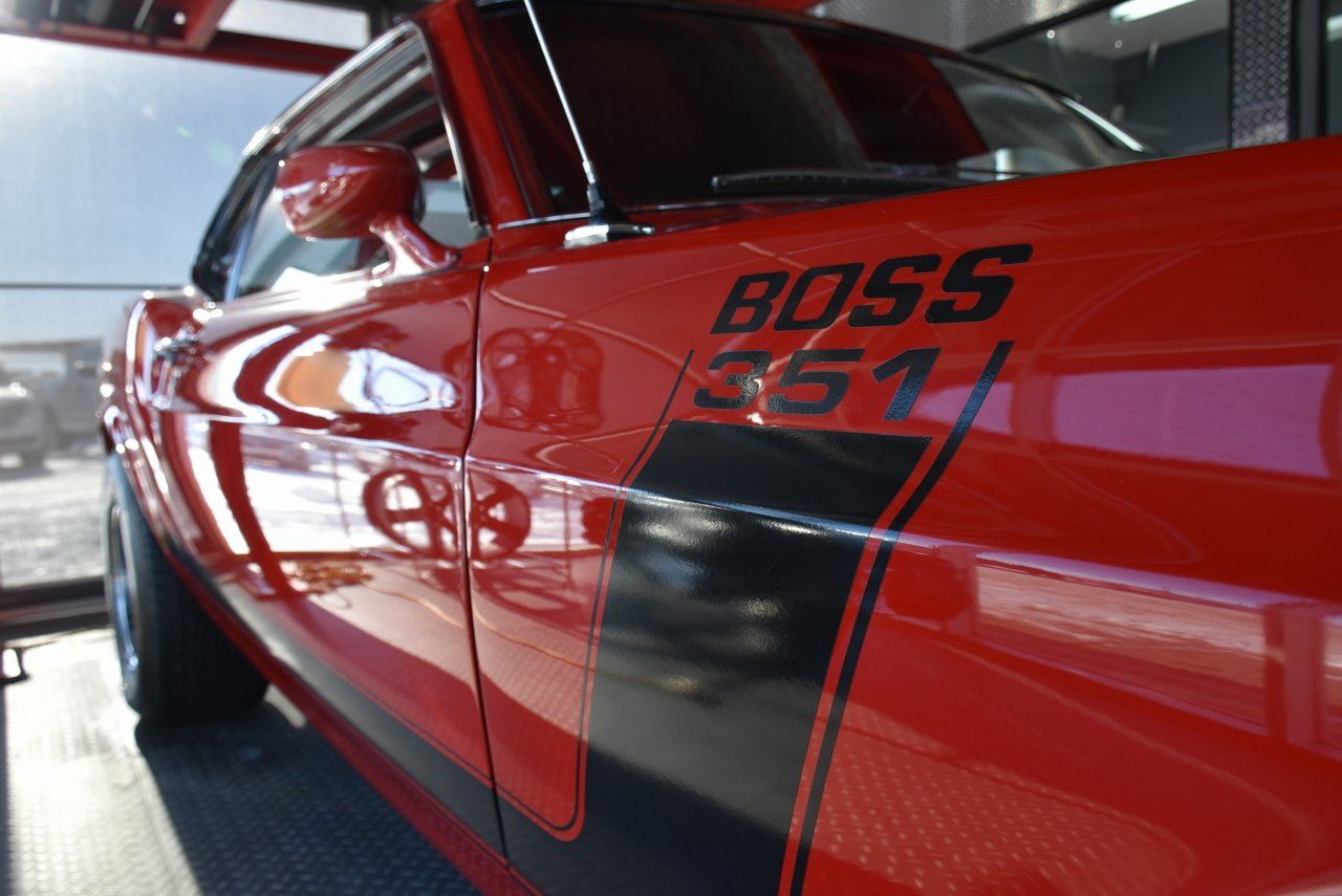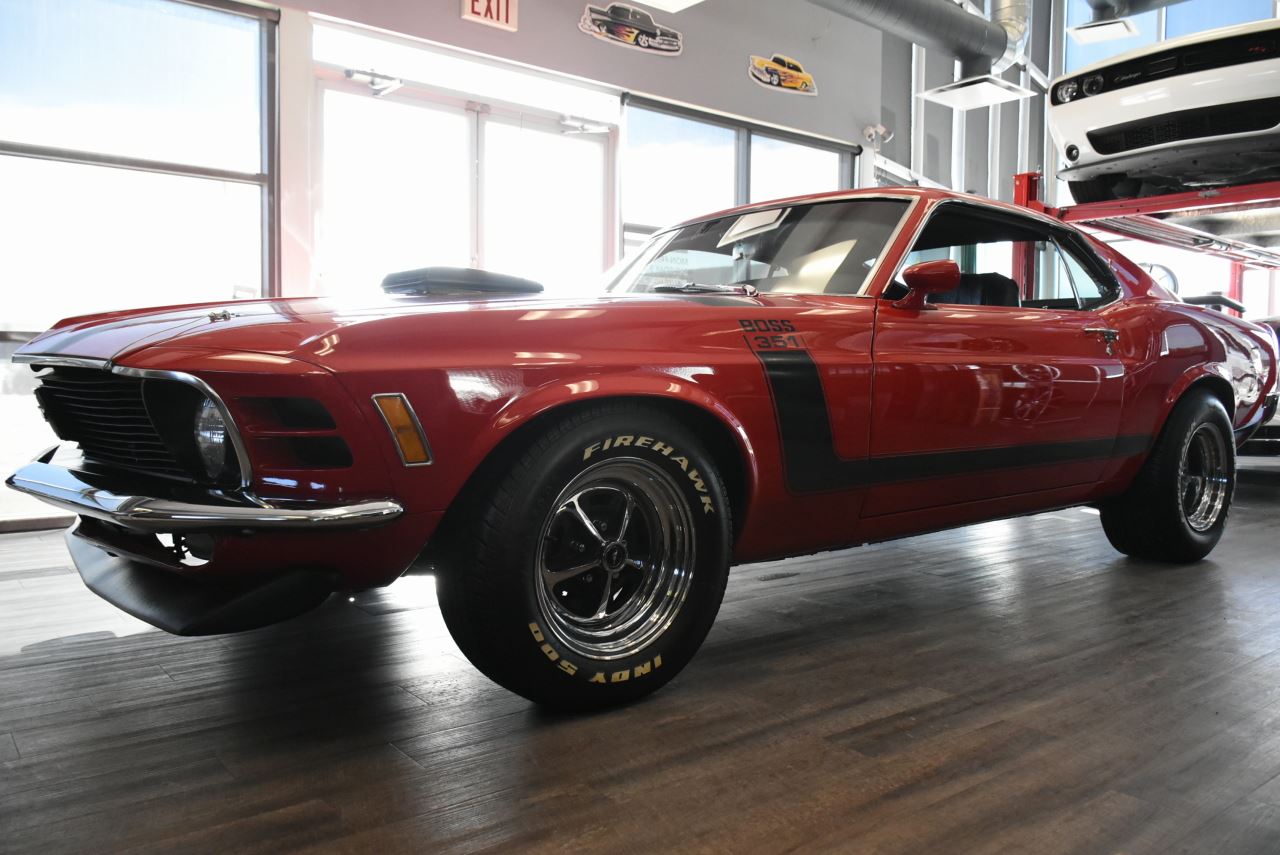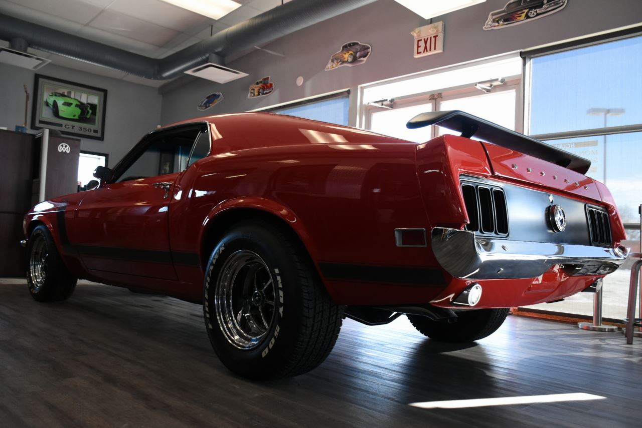 Custom Painted 1970 Ford Mustang Red with several coats of Paint and Clear. Custom Boss Reflective Black GraphicsAll Chrome has been replaced with new. New Chrome Bumpers, Emblems, Front Grill, Tail Light Bezels and Gas Cap351 cid V8 Cleveland. Completely Rebuilt to Stock Specs. Demon 650cfm Carb. March V Belt Pulley System. Ford Finned Valve Covers. Shaker Hood Scoop IntakeNew Date Correct 4 Speed Manual Transmission. Hurst Floor ShifterNew Griffin Aluminum Radiator 16 inch Electric Hi Flow Fan. Polished Aluminum Over Flow. New Black Rubber HosesNew Master Mufflers. New Stock Exhaust Pipe