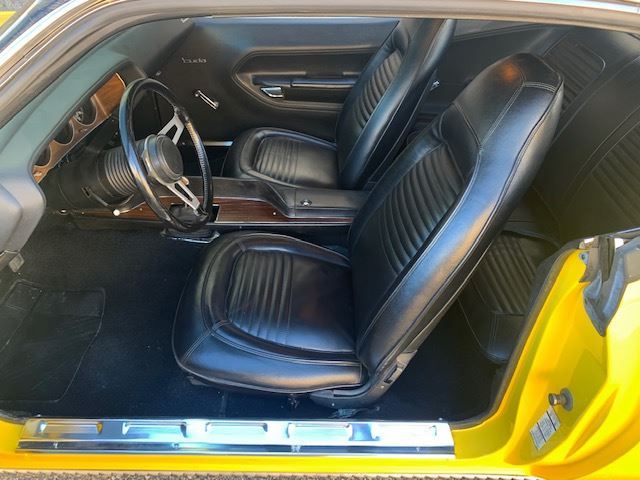 This stunning Cuda has been rotisserie restored with only 365 miles on it since its completion. Its been restored to factory specifications including being finished and its immaculate top banana yellow colour code with black vinyl roof. The body on this car is Lazer straight with all original panels and is worthy of any blue chip Car Collection. The underside chassis is also been completely restored and finished in its correct colour top banana code. The matching numbers 340 engine is rocksolid in the car drives out extremely well And is incredibly powerful throughout the whole gears. The matching valve covers totally restored also come with the car. The trunk and spare have been restored to factory specifications in the trunk has been painted top banana and is in perfect condition. The vinyl top is brand new and shows extremely well and is an excellent condition. This factory four-speed pistol grip car is not for the faint of heart it is a multiple award winner and has been restored perfectly to show specifications. All the numbers on the body are still there and it comes with a factory original data tag in its place. The car is active Alberta title And ready for a new new home this six figure complete rotisserie restoration belt is absolutely stunning youll be hard-pressed to find another factory matching numbers 340 4 speed