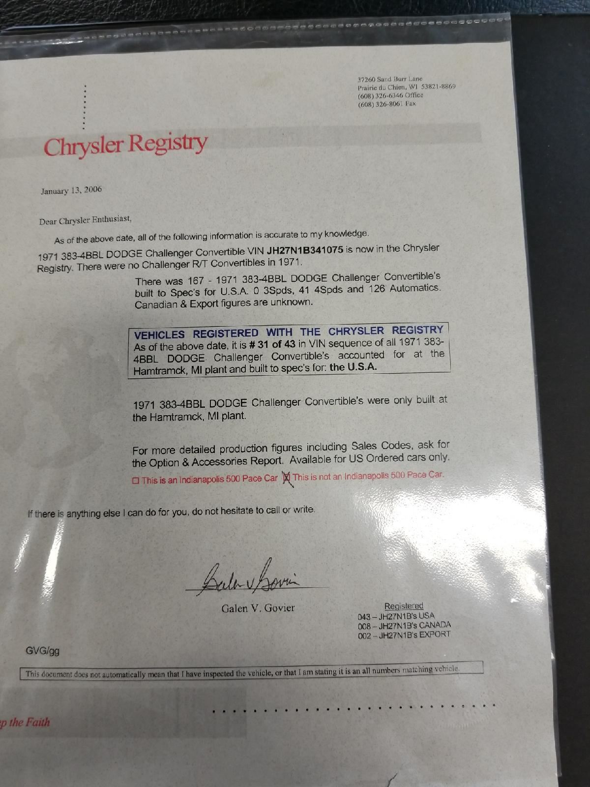 1971 DODGE CHALLENGER 383 CONVERTIBLE