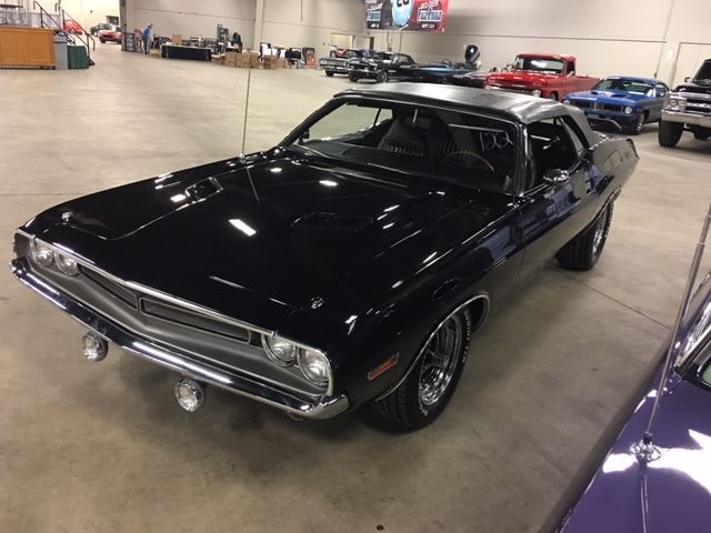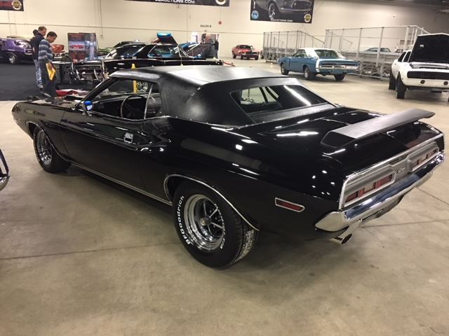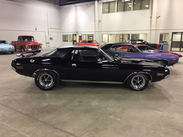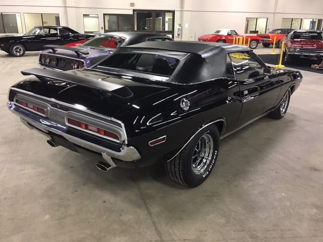 This is a very straight, clean convertible challenger in rich triple black paint with power top. V8, automatic 4 barrel with buckets and console. T.A. radials mounted on magnum wheels. Frame up restoration. Gorgeous!