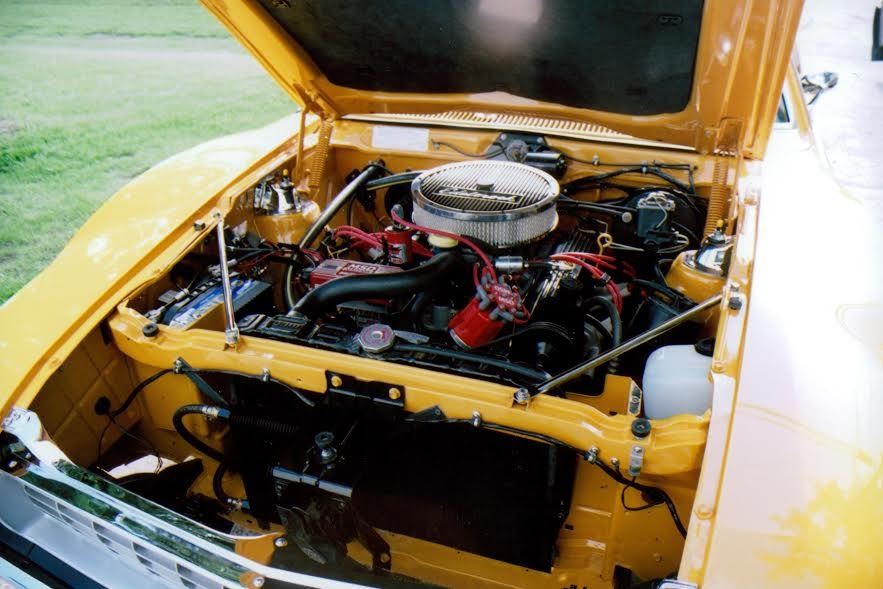 P/S, P/B, Front Disc; Edlebrock 800 CFM Carb and Intake; Front and Rear Sway Bars; Fast Ratio Steering Box; QA1 Shocks; Cal Tracs Rear Suspension; Leather Interior; Stereo; Aluminum 3 Core Rad, Electric Fan; MSD ignition with Rev Limiter; Moswer Solid Axles, 3.53 Posi; 727 Auto with TC1 Torque Converter, 1200 R.P.M.; Headers, Flo Master with crossover 2 1/2"; Tough Daug Dog Short Block 500 HP