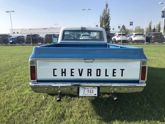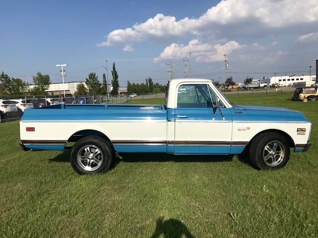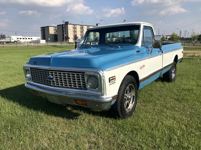 1972 CHEVROLET C10 CHEYENNE SUPER SPORT VERY RARE FACTORY OPTIONS350 V8 WITH ALL ORIGINAL INTACT FACTORY AIR CONDITIONING SYSTEMFACTORY POWER FRONT DISC BRAKESFACTORY POSITRACTION AXLEPUSH BUTTON RADIOFACTORY CUSTOM BLUE CLOTHORIGINAL FACTORY COLOURS NICELY RESTOREDAUTOMATIC TRANSMISSIONALL NEW BALL JOINTS AND CONTROL ARMS,TIE ROD ENDS AND ALIGNMENTNEW HEATER CORE AND HEATER SWITCHNEW REAR DRUM BRAKESNEW RIMS AND TIRESRESTORED INTERIOR