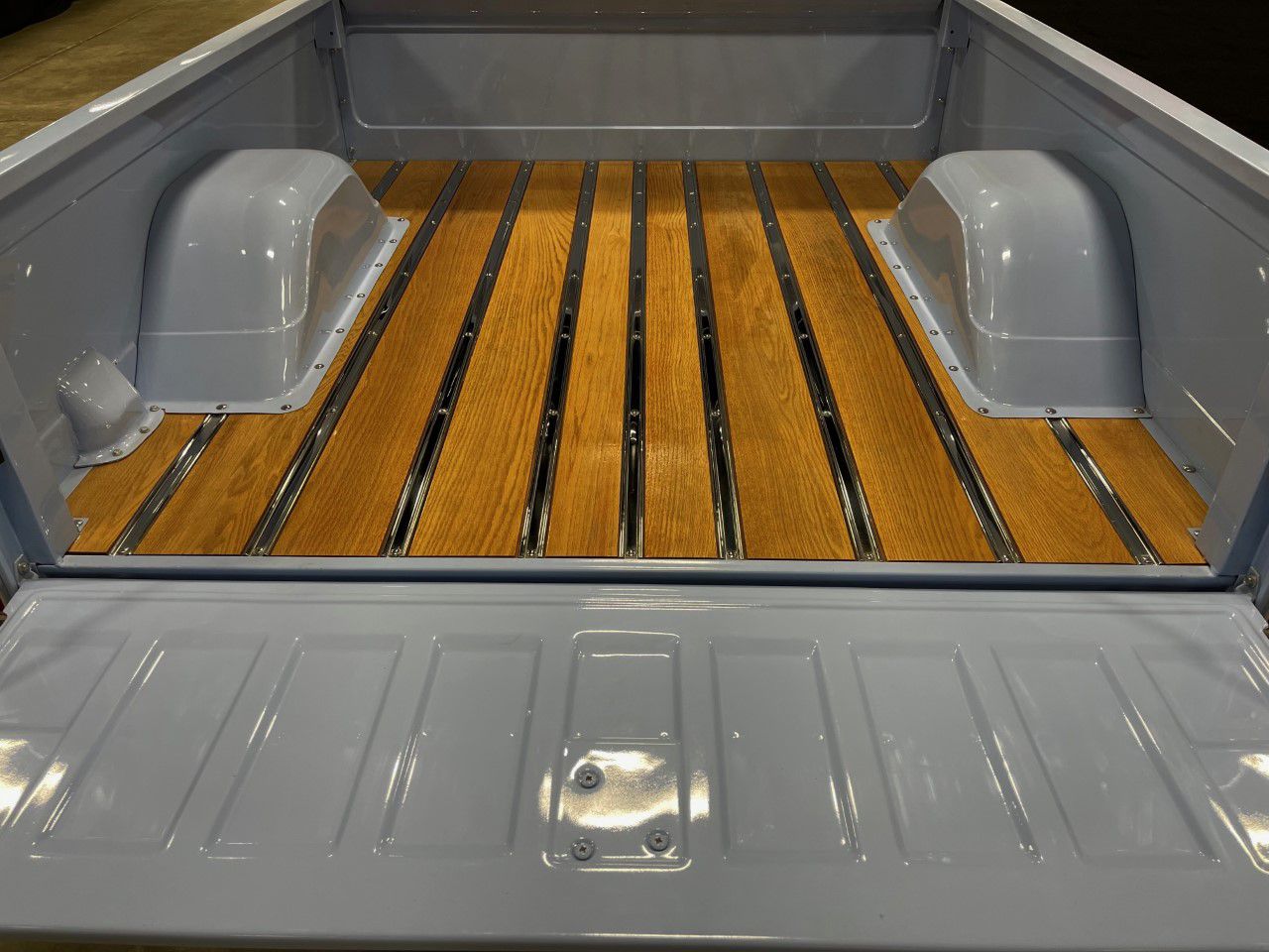 Body: Fully rotisserie restored. Impeccable rust repair process – cab corners and rockers (mounts were good) along with front floors. All other panels are NEW except the doors. NEW box sides, box front and tailgate. Brand new Oak bed with chrome strips. NEW replacement chrome and stainless trim. All NEW tinted glass. All chrome and brightwork is brand NEW. NEW cowl hood. NEW chrome inner front fenders.