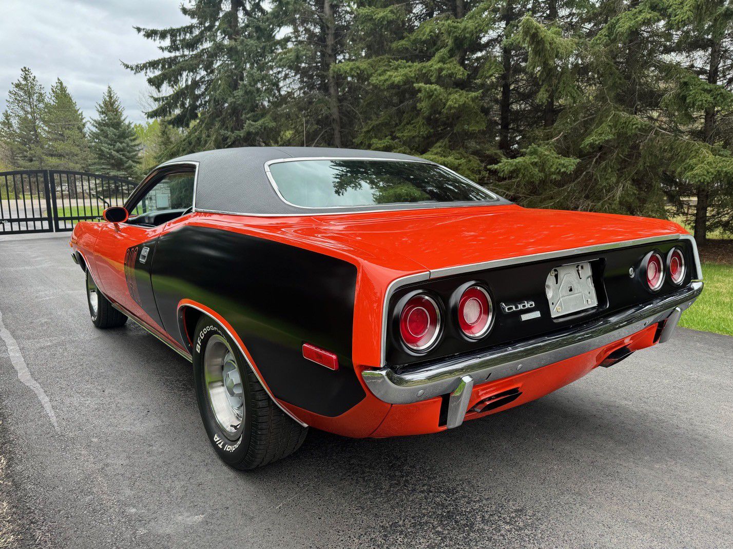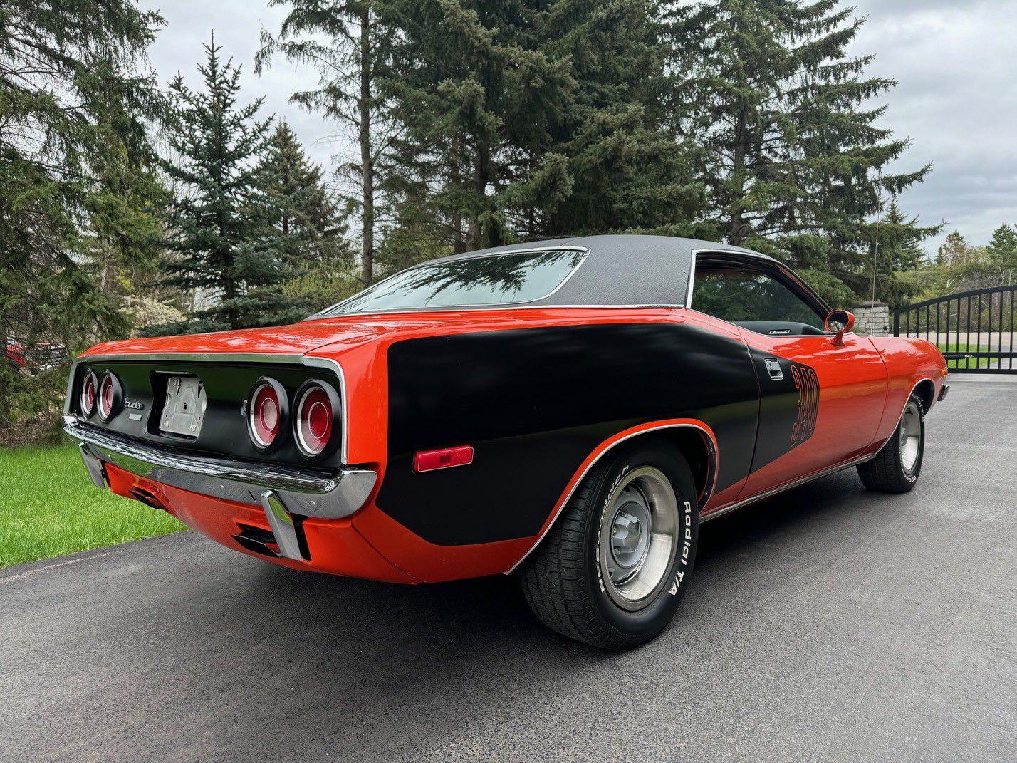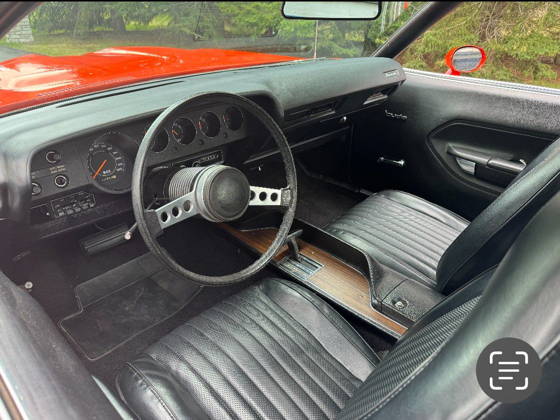 The 1972 Plymouth Barracuda with an automatic transmission is a classic American muscle car known for its stylish design and reliable performance. Powered by a range of V8 engines, the '72 Barracuda features a sleek and aggressive exterior with a distinctive split grille, bold lines, and a sporty stance. The interior offers comfortable bucket seats, a well-laid-out dashboard, and driver-friendly controls, ensuring a smooth and enjoyable ride. While it may not boast the raw power of earlier models, the 1972 Barracuda remains a beloved classic, appreciated for its timeless appeal and driving pleasure. It’s well optioned with factory A/C and many other factory options, it is finished in “hemi orange” and black vinyl interior.