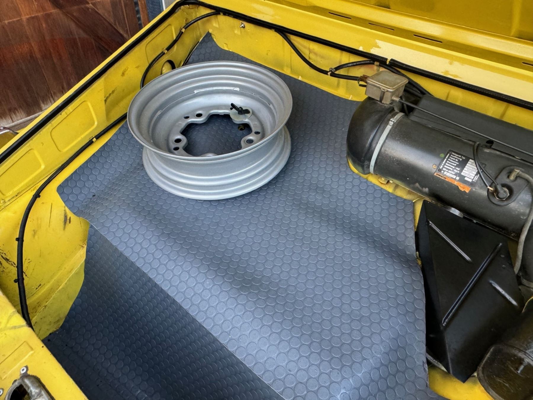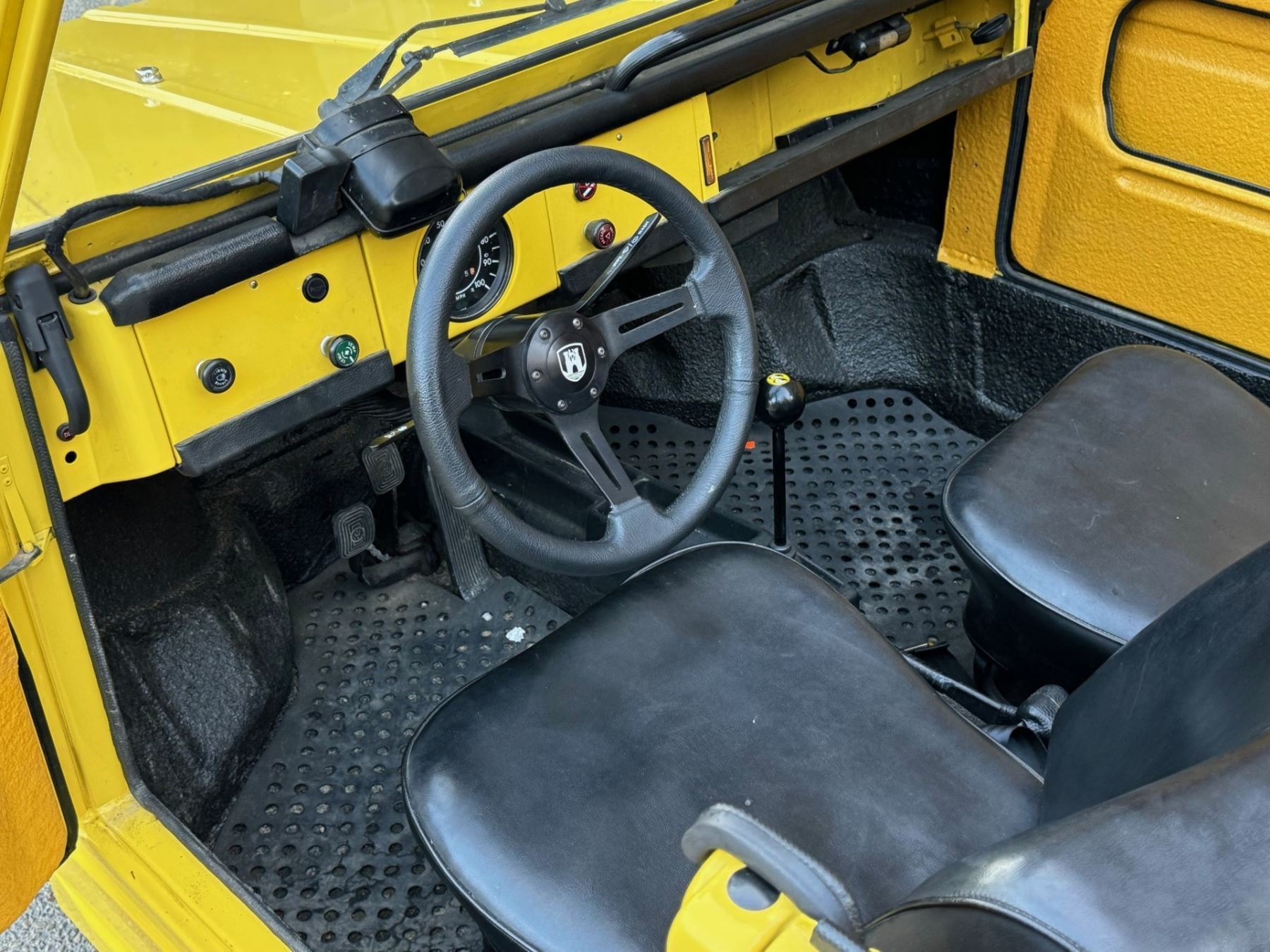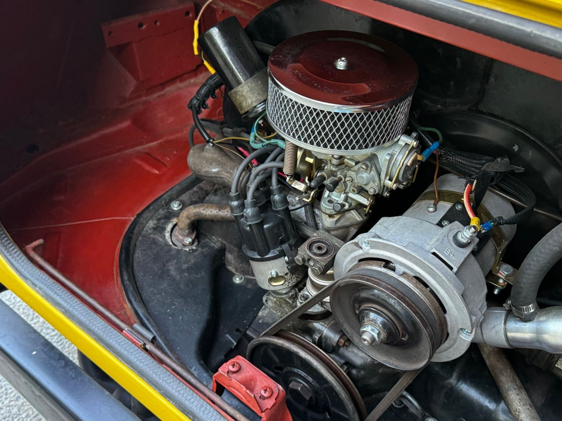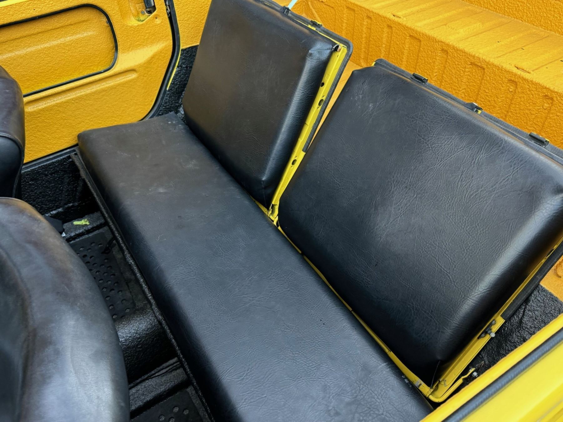 1973 Volkswagen Thing is powered by a 1.6-liter flat-four paired with a four-speed manual transaxle and is finished in yellow over black leatherette. A refurbishment is said to have been completed in 2020, and work included refinishing the exterior and the installation of a lowered suspension, 15? BRM Speedwell wheels, and a Tri-Mil exhaust. The car is also equipped with a removable hardtop, a heater, removable doors, and folding rear seats