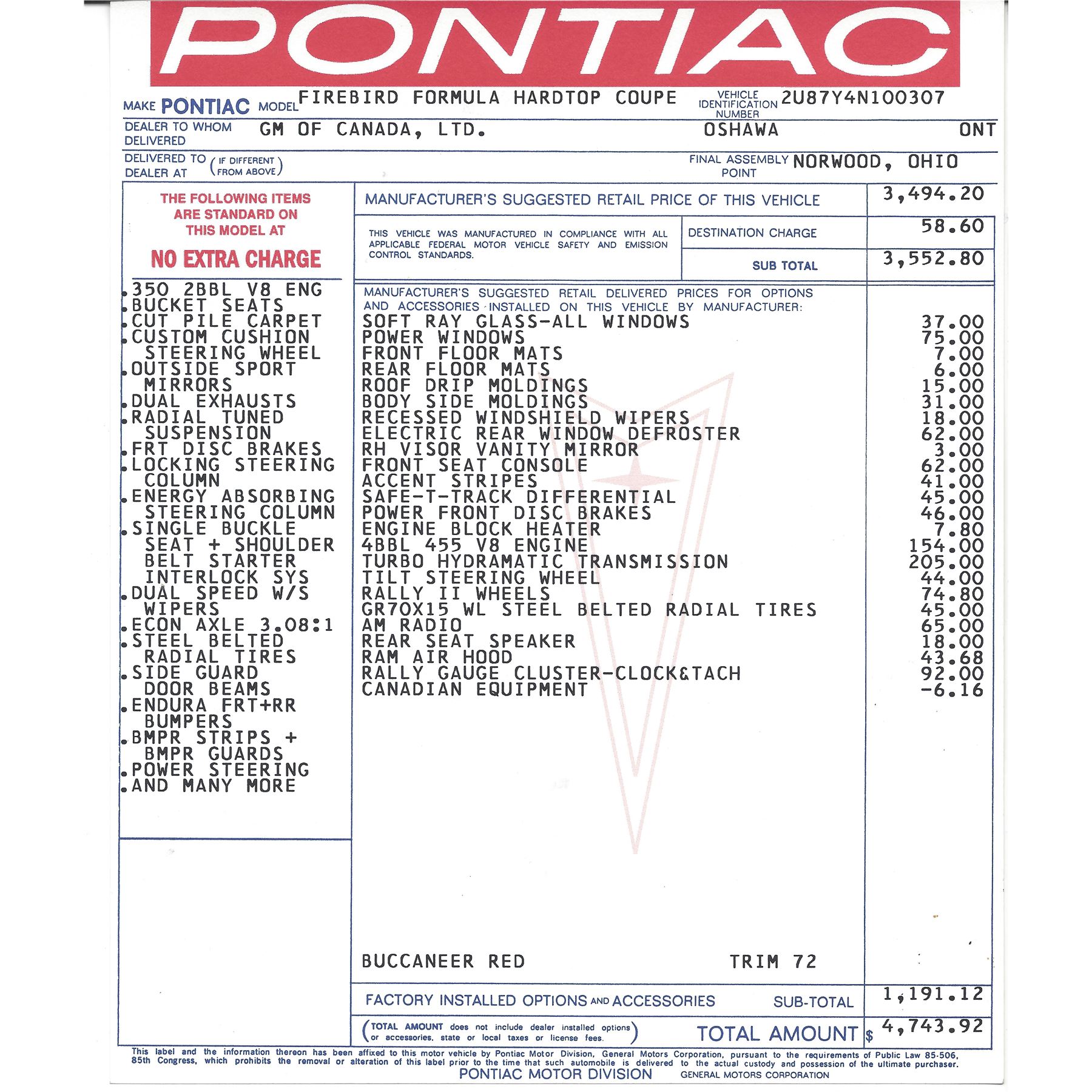 1974 PONTIAC FIREBIRD FORMULA 455 BIG BLOCK