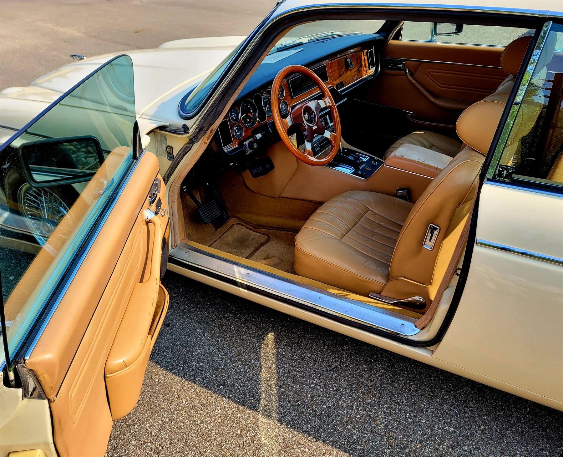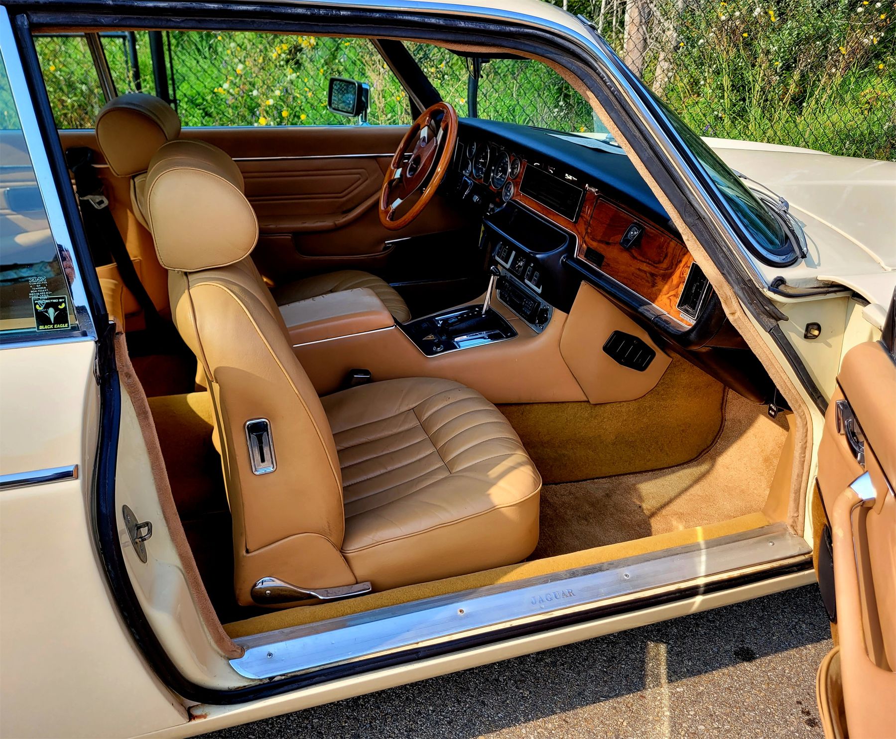 THE VEHICLE IS CREAM IN COLOUR WHICH IS A COLOUR CHANGE FROM THE ORIGINAL BRITISH RACING GREEN. THE ORIGINAL ½ “ VINYL ROOF WAS REMOVED. THE BODY, GLASS AND CHROME ARE IN EXCELLENT CONTITION. THE INTERIOR IS TAN LEATHER AND IS ALSO IN EXCELLENT CONDITION. THIS VEHICLE HAS GREAT CURB APPEAL AND IS IN SOUND MECHANICAL CONDITION. A GREAT BUY FOR THE JAGUAR ENTHUSIAST!