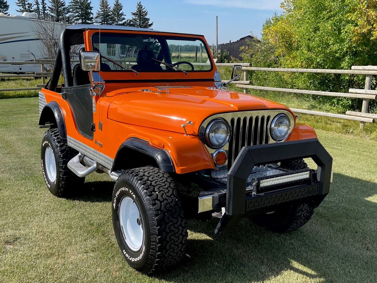 1980 Jeep Laredo CJ5, 360 CID, 4spd, dual range transfer case. Complete body and paint approx. 8 years ago but only 19 miles since restoration including complete new wiring , brakes, joints, dash, interior, paint, etc. 2 tops to go with, Bimini and half doors as well as full enclosed top and full doors.
