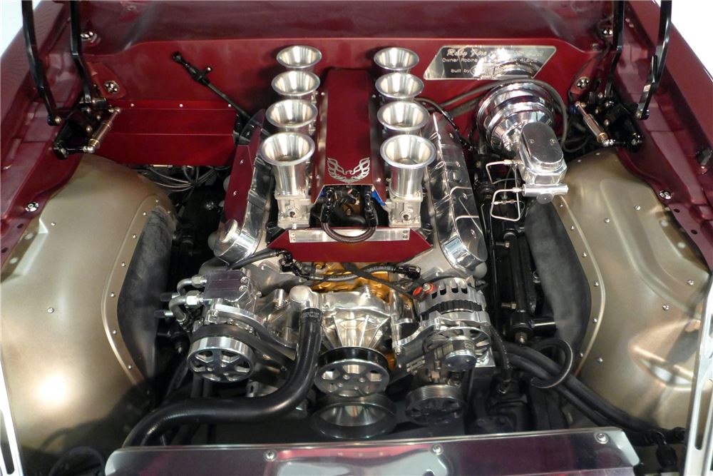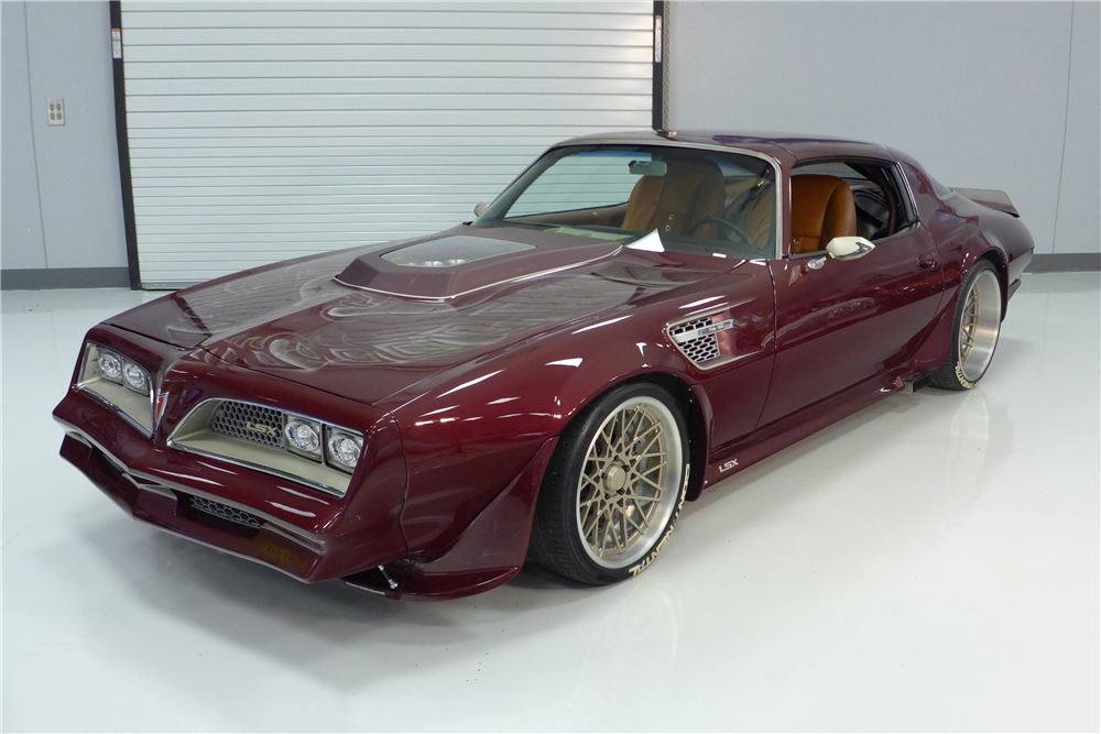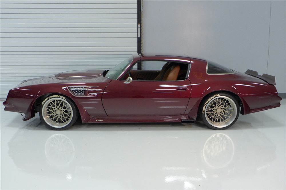 This highly modified Pro-Touring 1980 Pontiac Firebird was handcrafted with the best available components and has many custom features. It has a Domination Motorsports stacked fuel-injection system, 350ci LS1 V8 engine and 4-speed automatic transmission. It also features Pro Comp cylinder heads, Hedman headers, MagnaFlow stainless-steel exhaust system, power Wilwood disc brakes with 6-piston front calipers, Moser 12-bolt rear axle with 3.73 gears, RideTech 4-link rear suspension, tubular front control arms and coilover shock absorbers. The exterior features custom honeycomb grille, taillights, spoilers, rear diffuser, side vents, mirrors and ground effects, and rides on American Racing 19 aluminum wheels with continental ZR-rated performance tires. The fully customized leather-upholstered interior features Dakota Digital VHX gauges and a 2,700-watt Sony stereo system. This custom Firebird has been driven 261 miles since its completion.