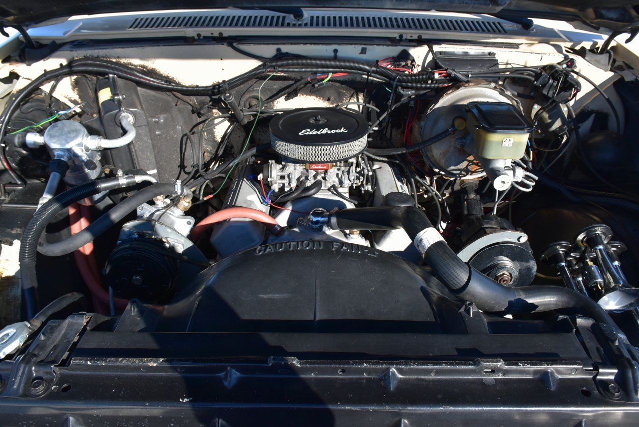 This Blazer is factory beige and white with chrome accent and jacked up with top notch Bilstein shocks, 16" Mickey Thompson rims and on 315/75/R16 Toyo Open Coutnry rubber! With the 350cui V8 immaculately tucked under the hood with a few extras like the Edelbrock upper intake, air filter housing and the Chevrolet valve covers. The throaty exhaust system has headers and a double wide tip.
