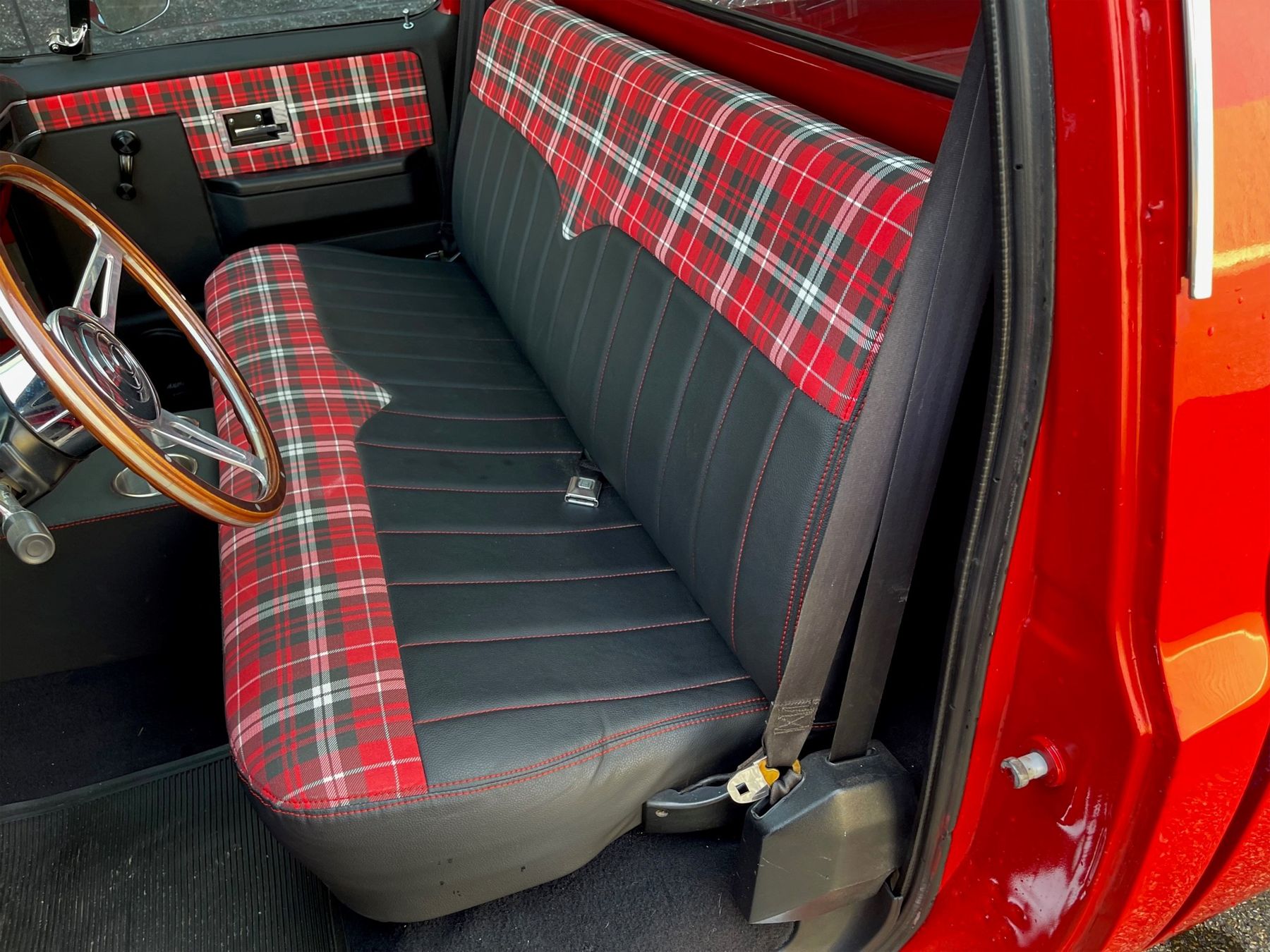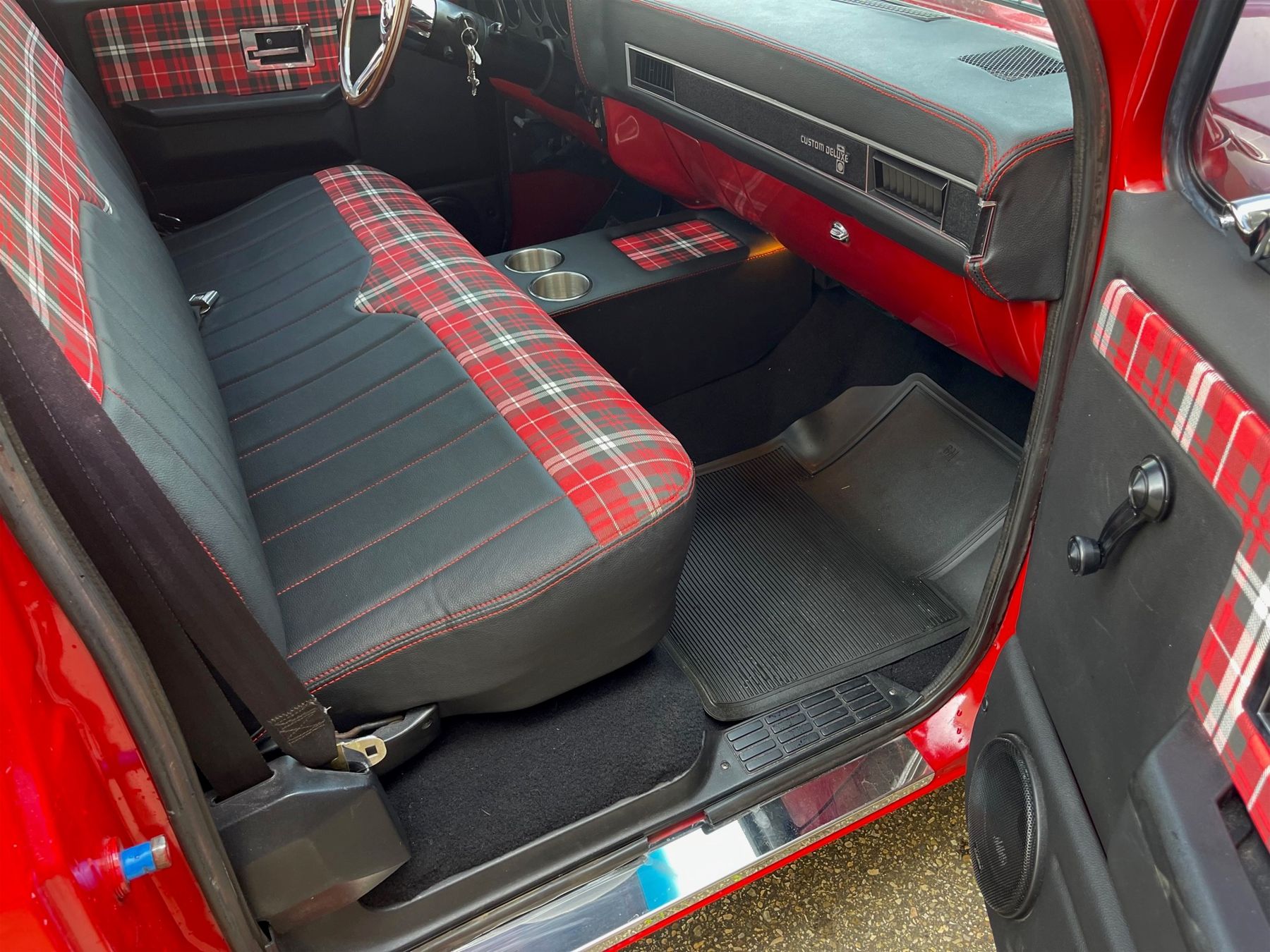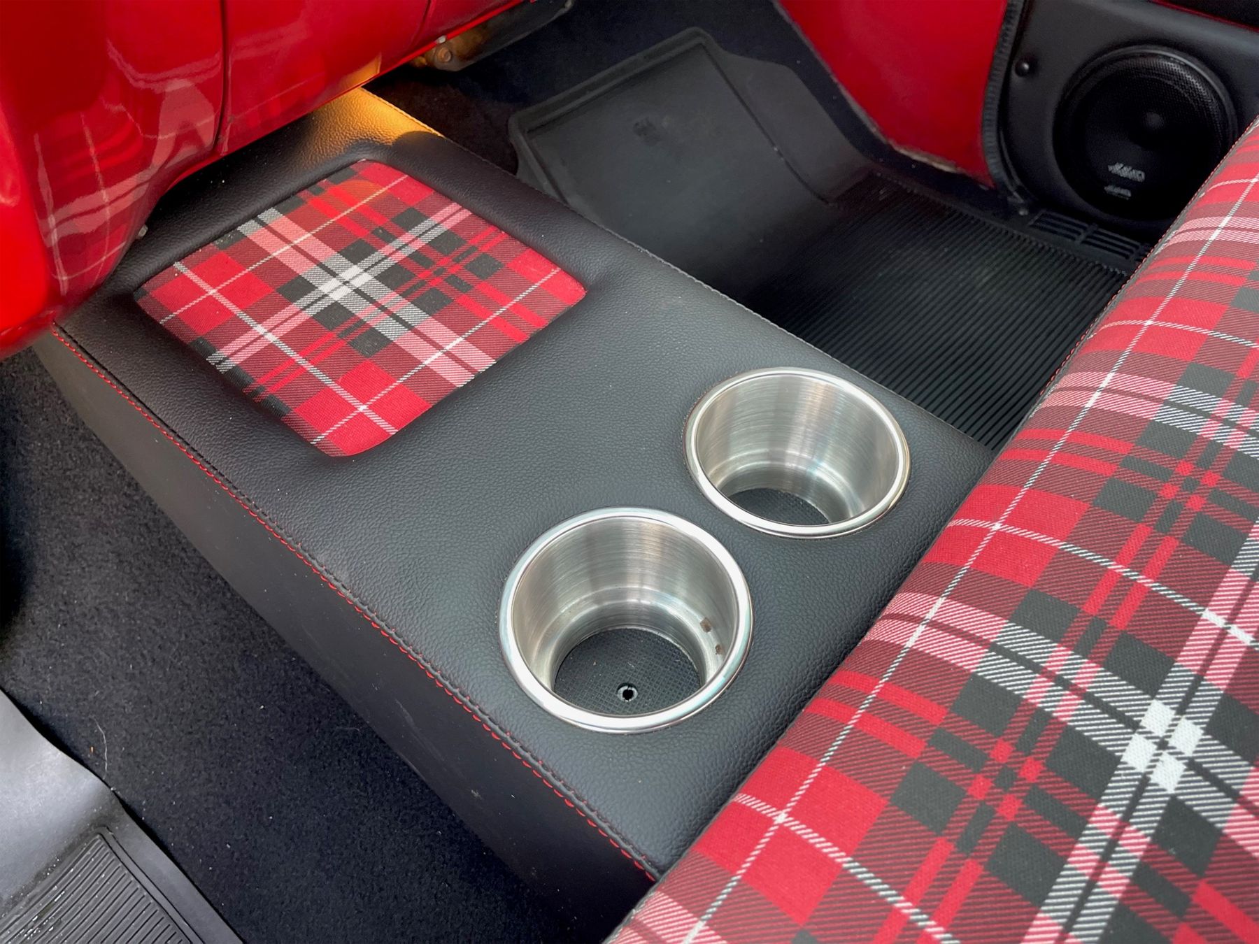 Full custom interior with plaid inserts in the seats, door panels and custom console with drink holders.