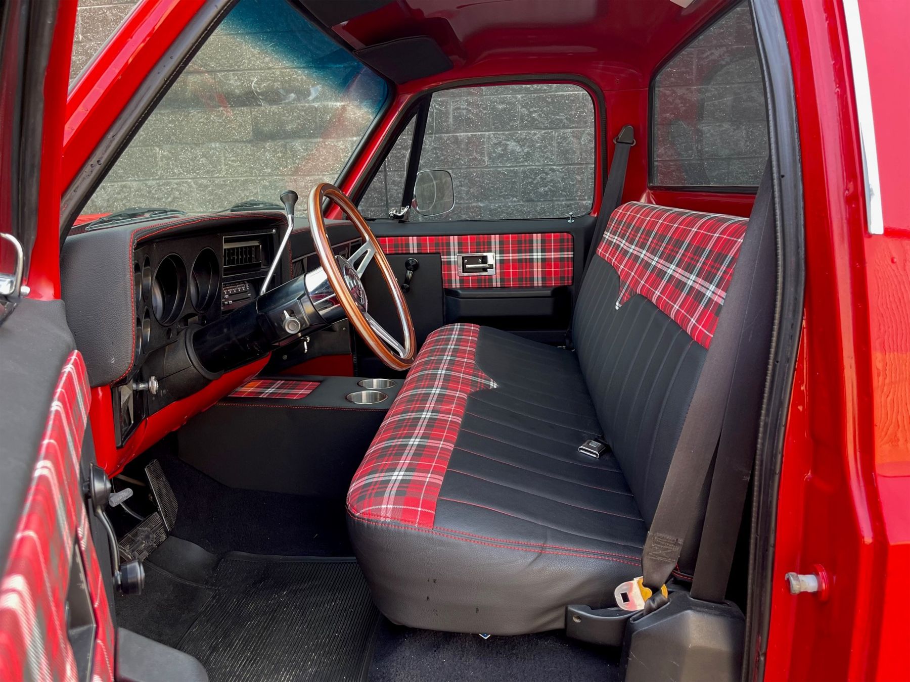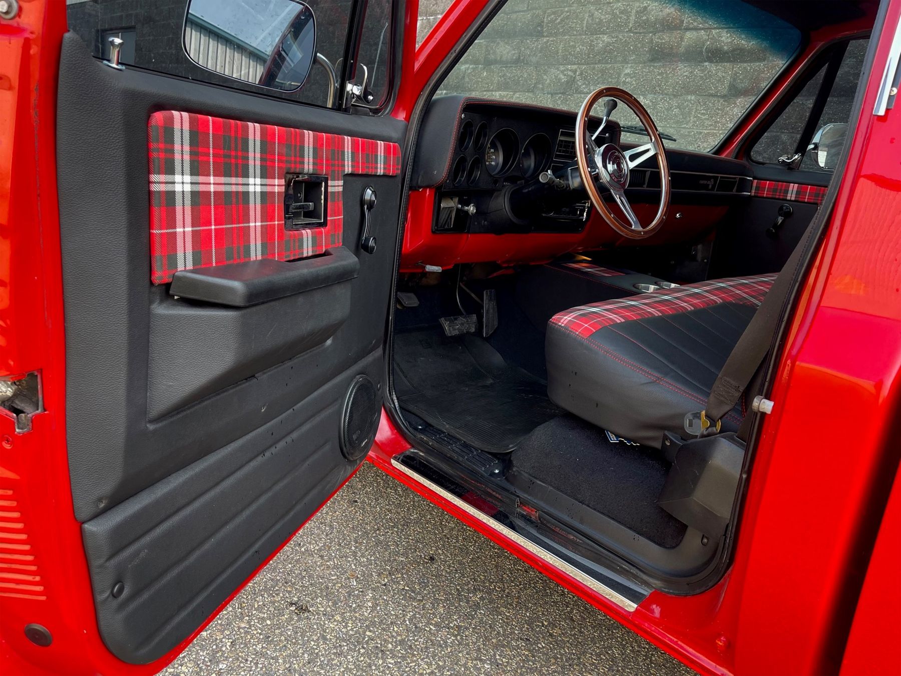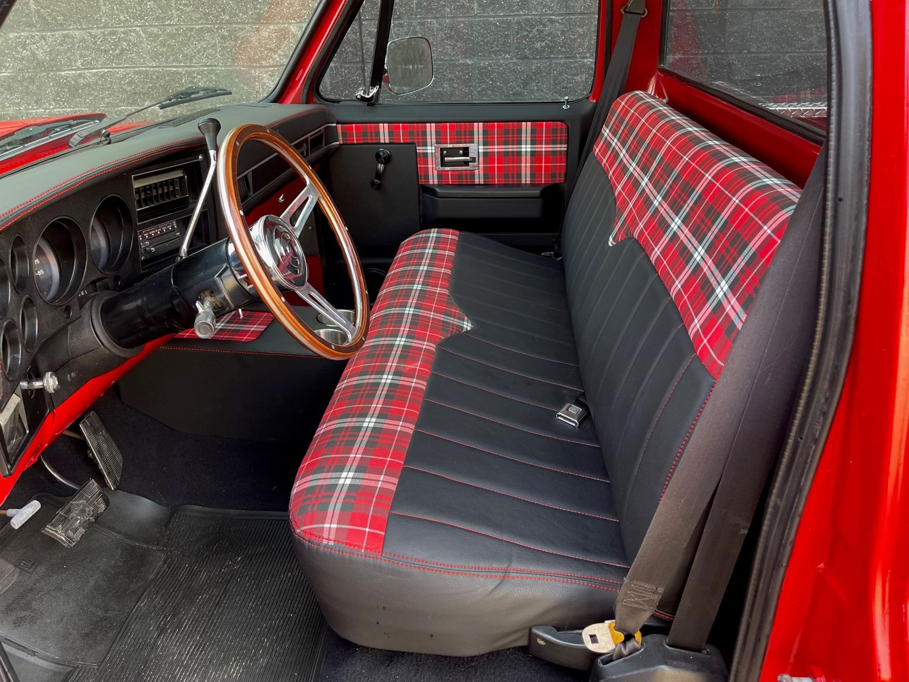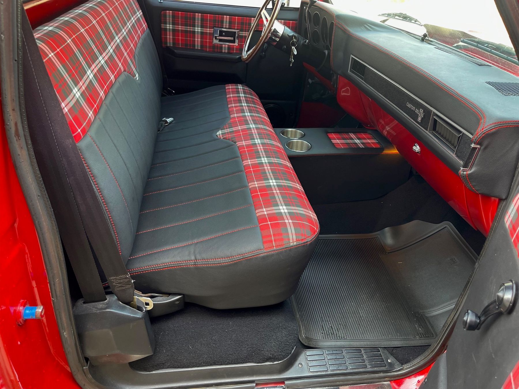 Full custom interior with plaid inserts in the seats, door panels and custom console with drink holders.