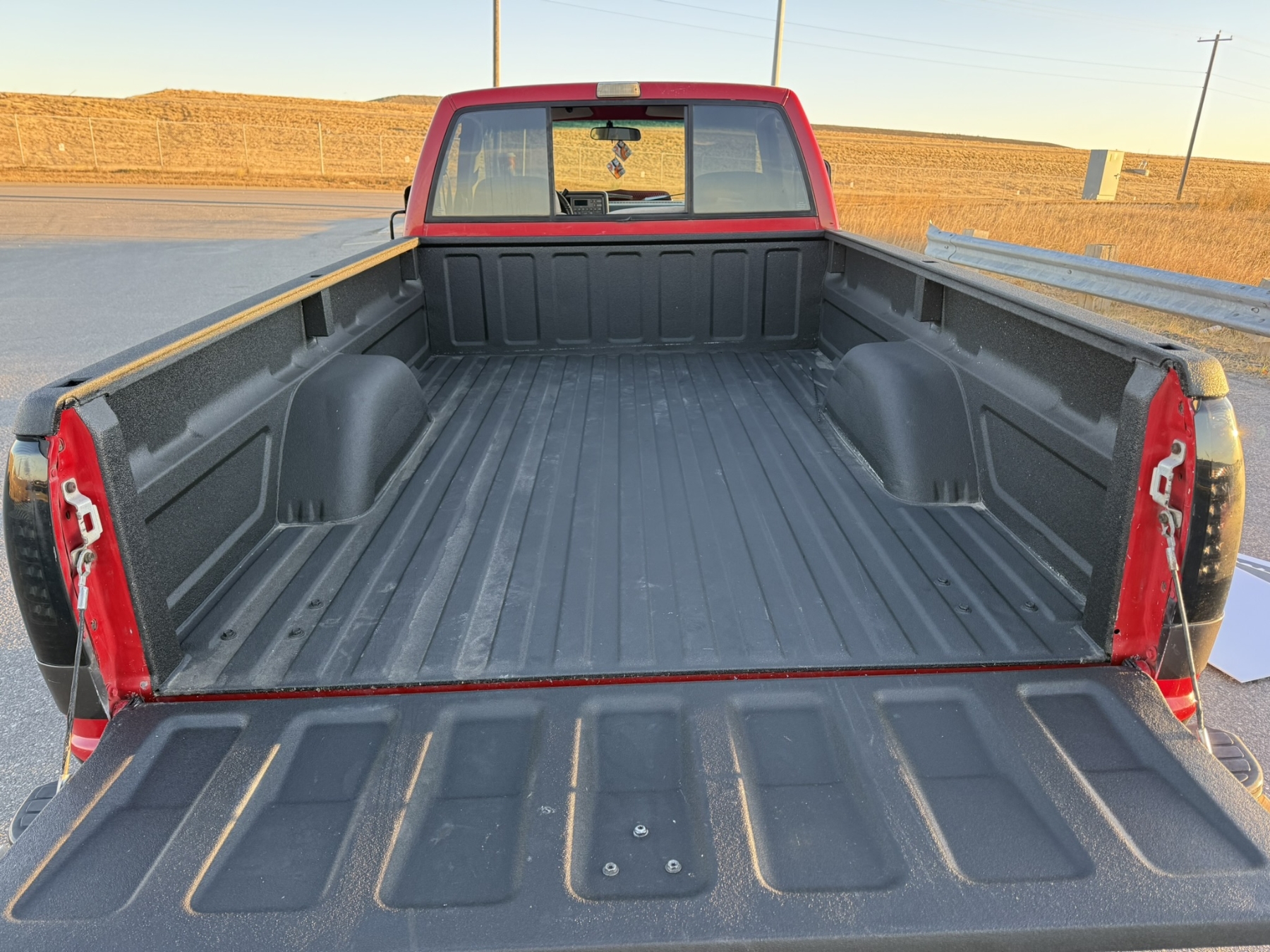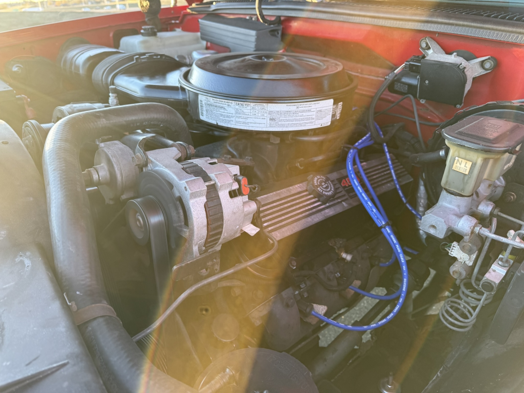 This ol’ school beauty underwent a partial restoration, including: dent removal and partially repainted sides, power polish, new decals and pin-striping (consistent with original retro orange pinstripes separating the red and grey), brand new spray-in Line-X box liner, full detail, cool old school towing mirrors, factory hitch, …, this truck is clean and has been kept dry, and it shows.