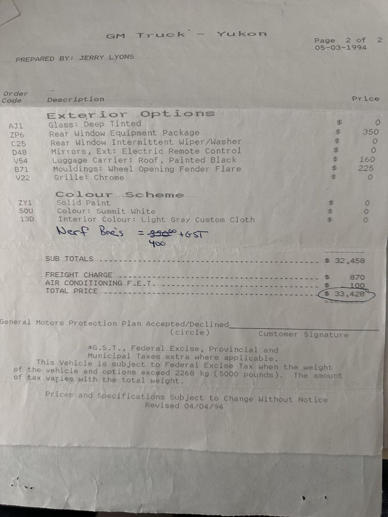 1994 2door 4X4 Yukon numbers matching with all original paperwork including build sheet and original bill of sale Motor has had completed top end rebuilt by reputable shop with warranty. New cam shaft, new lifters, new timing chain valve seats and intake gasket. New A/C compressor and lines refurbished air dryer. All new break lines and fuel lines. Breaks are 65% front and 70% rear. New 3” BDS lift including upper control arms new shocks ball joints steering shock added. Tie rod ends this truck needs nothing new Fuel 20” rims with locking nuts and Good year tires with 60% tread left. mechanically. I have all original stereo equipment comes with the truck . No rust on body needs paint job and it’s a super rare truck that are getting harder to find New LED headlights LED taillights All oils were changed new transmission filters and gaskets new seals and gaskets on both front and rear axels changed with new synthetic fluids.