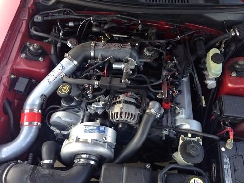 Pro-charged and intercooled 4.6L 'triton' V8. Based from an MMR (Modular Mustang Racing) 4340 forged short block and assembled by AFI performance. Competition cams 262 camshafts, BBK 78mm throttle body, Ford racing PI intake with the upgraded aluminum coolant crossover, BBK headers with full exhaust & x-pipe, MSD coils, Center-force clutch, Upgraded Cobra brake kit, Welded in sub-frame