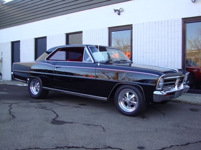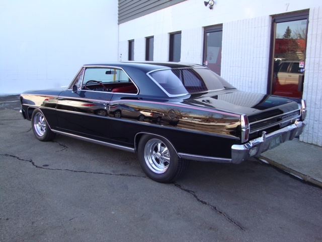 SAME OWNER FOR OVER 40 YEARS!! VERY RARE TOP OF THE LINE SPORT DELUXE MODEL. COMPLETE $$SIX FIGURE STOCK APPEARANCE BARE METAL ROTISERRIE RESTORATION WITH GULPS OF SWEET AND TASTEFUL MODERN CUSTOM HIGH-PERFORMANCE DRIVETRAIN, STEERING, SUSPENSION AND DRIVER COMFORT UPGRADES USING THE BEST OF EVERYTHING AVAILABLE. POWERED WITH A HIGH PERFORMANCE V8 STROKER ENGINE WITH AUTOMATIC TRANSMISSION AND STRANGE FORD 9 PERFORMANCE REAR END WITH 3.55 GEARS. SOME OF THE ADDITIONAL TASTEFULL MODERN CUSTOM UPGRADES INCLUDE HEIDTS DELUXE SUSPENSION AND RACK AND PINION STEERING WITH DISC BRAKES AND TUFF STUFF POWER BRAKE BOOSTER, VINTAGE AIR CONDITIONING, GRIFFITH RADIATOR, EDLEBROCK PERFORMER HEADS-INTAKE-CARB-WATER PUMP, MSD ELECTRONIC IGNITION, IDIDIT TILT STEERING, COMPLETE AUTOWIRE HARNESS, HOOKER HEADERS, STEWARD WARNER GAUGES, BILLET SPECIALTIES, LOKAR, KN AND MUCH, MUCH MORE. VERY RARE MODEL, ONE OF ONLY 552 PRODUCED AND DOCUMENTED WITH GM CANADA BUILDSHEET CONFIRMING THIS CAR WAS A GENUINE ORIGINAL TUXEDO BLACK CAR WITH RED BUCKET SEAT INTERIOR. MUST BE SEEN!!