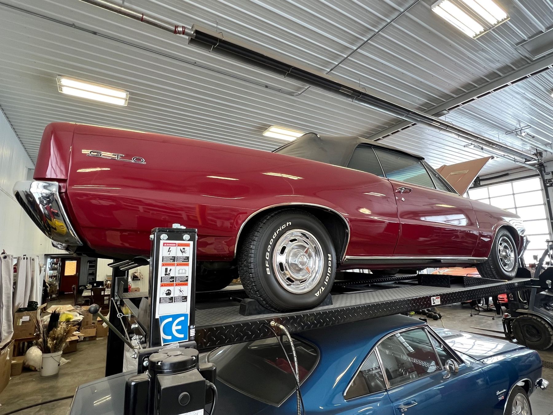 Rare 1964 Pontiac, GTO, convertible tray power. This is a real deal tri power 389 V8 from factory. The sale includes the PHS documents verifying the car. This is a complete matching numbers car with a factory Muncie, M20 speed, manual transmission and tons of rare power options, including power, brakes, power, steering power, windows, and power top, the car has been beautifully restored back to its original colour combinations, including factory, black interior and factory L Code Marimba red exterior paint. Additional options include 612 Ride and Handling Kit. 703 Safe T Track. W Code Wide Ratio M 20 4 Speed With Hurst Shifter. Code 348 - 389 3x2BBL Tri Power. Push Button Radio With Electric Antenna. GTO Custom Sports Wheel. Tach. Console.