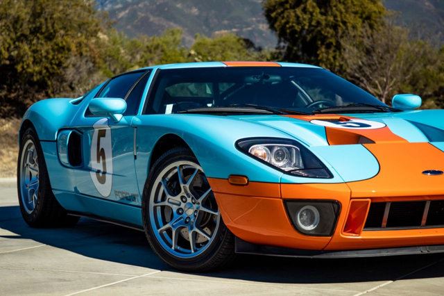 One of 343 Ford GTs in the Heritage/Gulf paint scheme. 2,911 actual miles. Comes with original Window Sticker and accessories from Ford. Clean CARFAX and AutoCheck reports. The Heritage livery is derived from the JW Automotive/American Gulf Oil sponsored GT40 that won the 24 Hours of LeMans in 1968. This is an American Supercar icon. When new, the Heritage option was $16,000 and was only available on 343 cars. Options include forged wheels, painted calipers and Heritage paint.