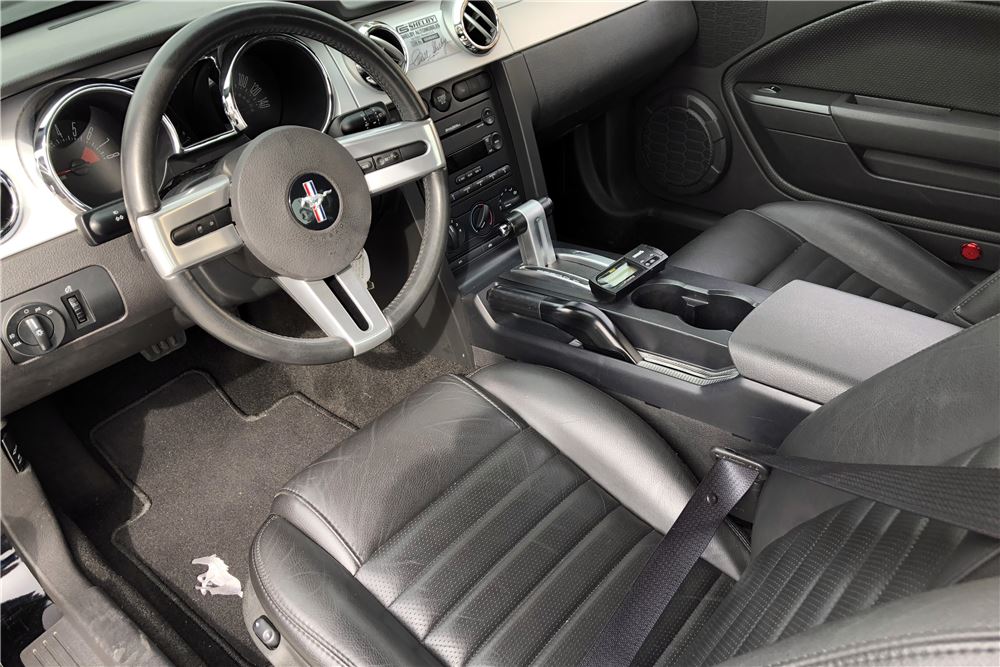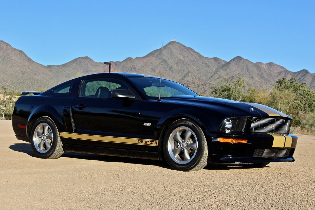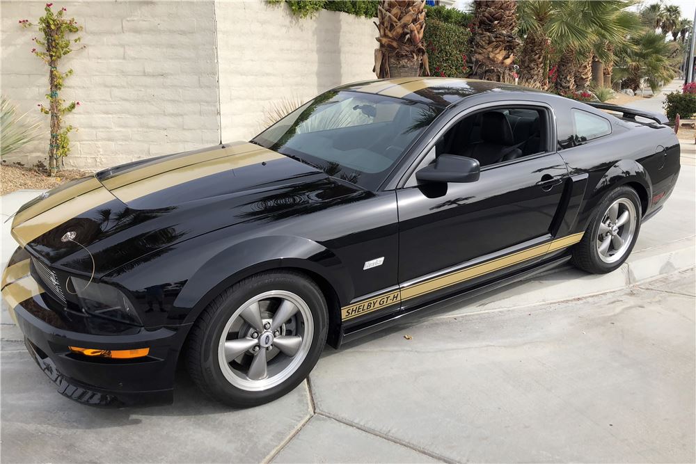 This black-on-black 2006 Hertz Shelby Mustang GT350 has 14,653 actual miles and is powered by a 4.6-liter OHC V8 engine and a 5-speed automatic transmission. It is in great condition and includes its original Window Stickers from Ford and Shelby American, original title, Shelby Certificate of Authenticity, owner's manual and an extra key.