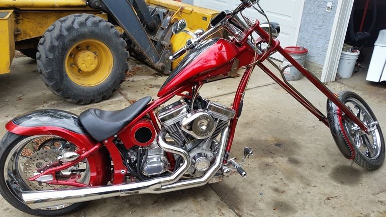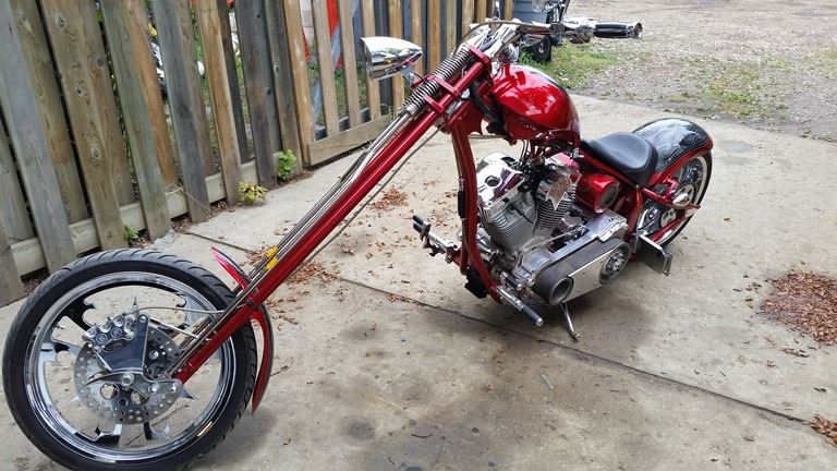 big bear chopper 2009 bought new in 2010 274 miles from new one owner bike spent it's life in shows at dealers on display runs great this has full warranty on all sheet metal and frame . Motor is a 100 smooth s&s with a baker transmission frame is a soft tail with a springer front end Alberta regestered and insured one off wheels and paint comes with a pillion passenger seat exhaust is stock all led lighting