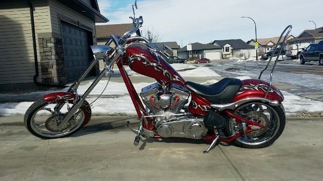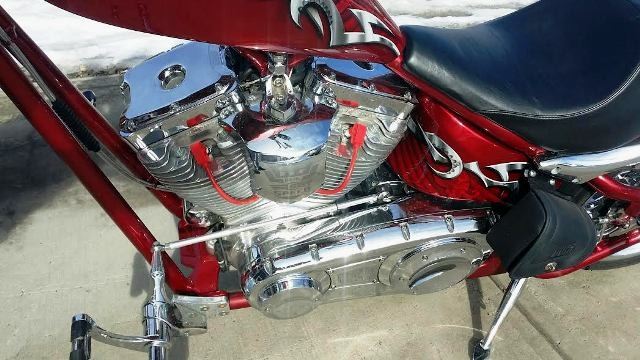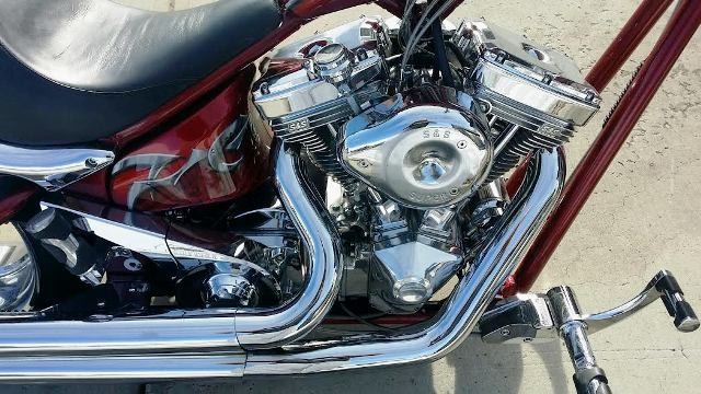 117 s&s, 6 speed baker, 300mm Avon, 39° rake, gel seat, 18" sissy, supertrapp slip ons, chrome package, BDM strut bag, low voltage indicator, chrome oil pressure gauge, forward control & peg extensions, cruise-mate, oil scavenger, new plugs & wires, battery & voltage regulator, chrome petcock, protective film on rear fender and tank. Service/owners manual, lots of extra parts.